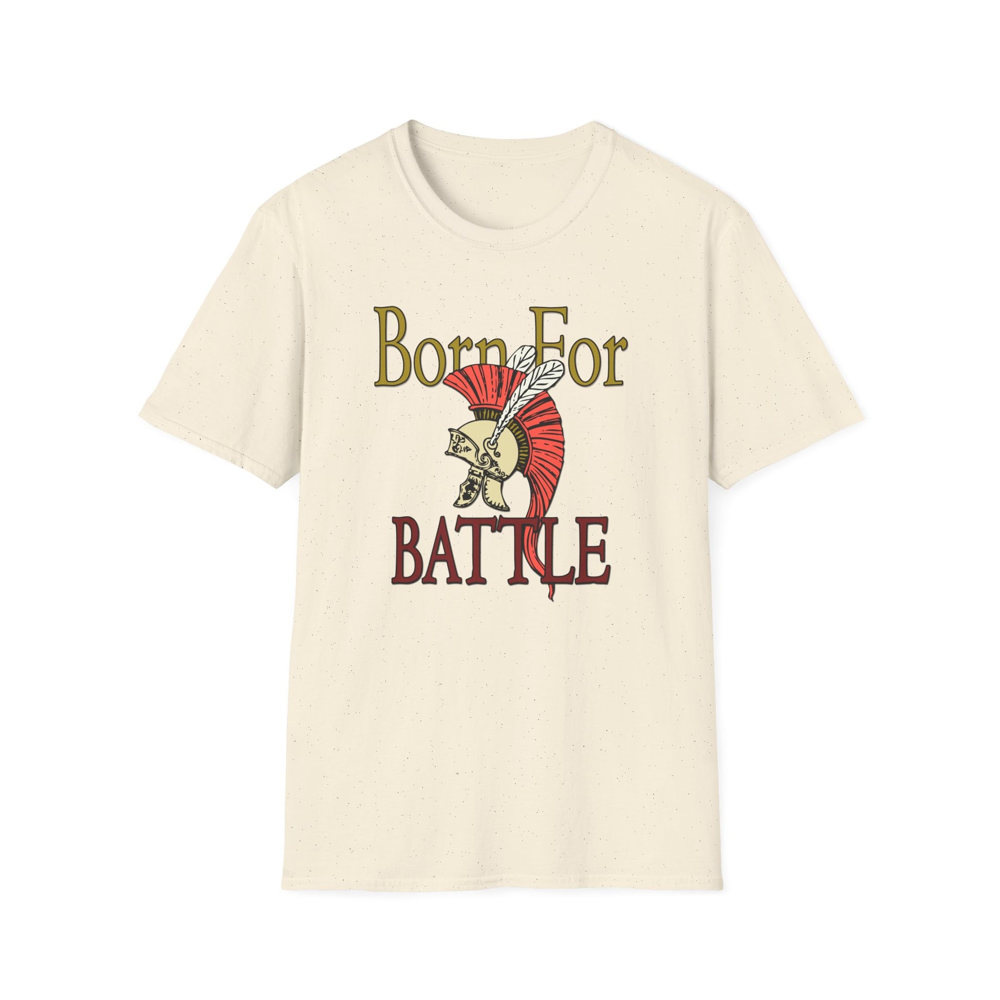 This T-shirt carries a quiet, confident energy — a worn-in rallying cry for anyone who shows up ready. The front art blends a classic Roman/Greek helmet illustration with bold, slightly distressed lettering that reads “Born For BATTLE.” It sits on a smooth, lightweight cotton that drapes easily and keeps the print crisp. Wear it under a jacket or on its own during training days, history meetups, or when you need a reminder to face whatever’s ahead. The shirt feels lived-in without being sloppy: breathable, responsibly made, and structured enough at the collar and shoulders to hold its shape through repeated wear. It’s more than a graphic tee — it’s a small piece of armor for ordinary days.