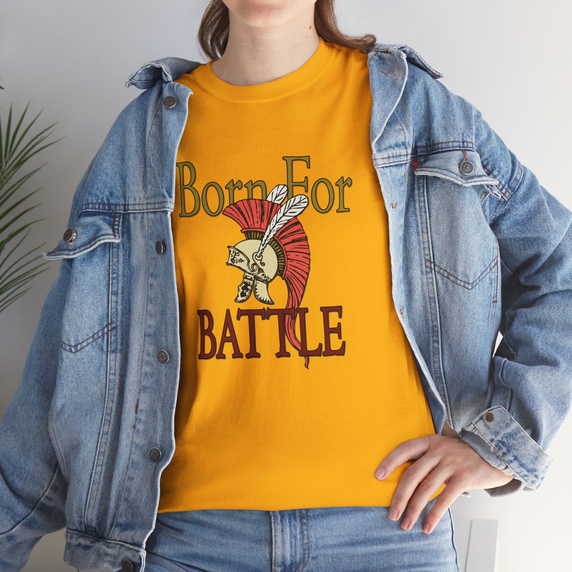 Celebrate your strength and assertiveness with this 'Born For Battle' design, making it ideal for the bold spirits in your life. Wear it solo for a laid-back look or layer it for a more stylish ensemble.