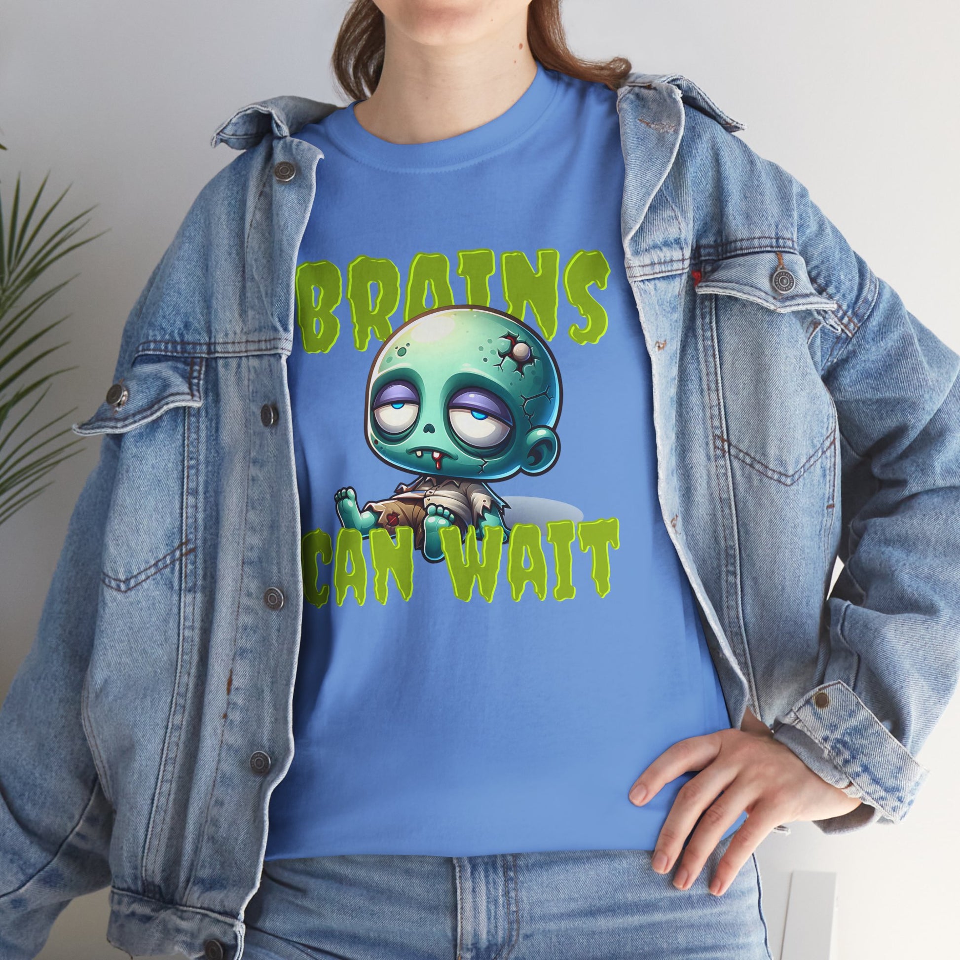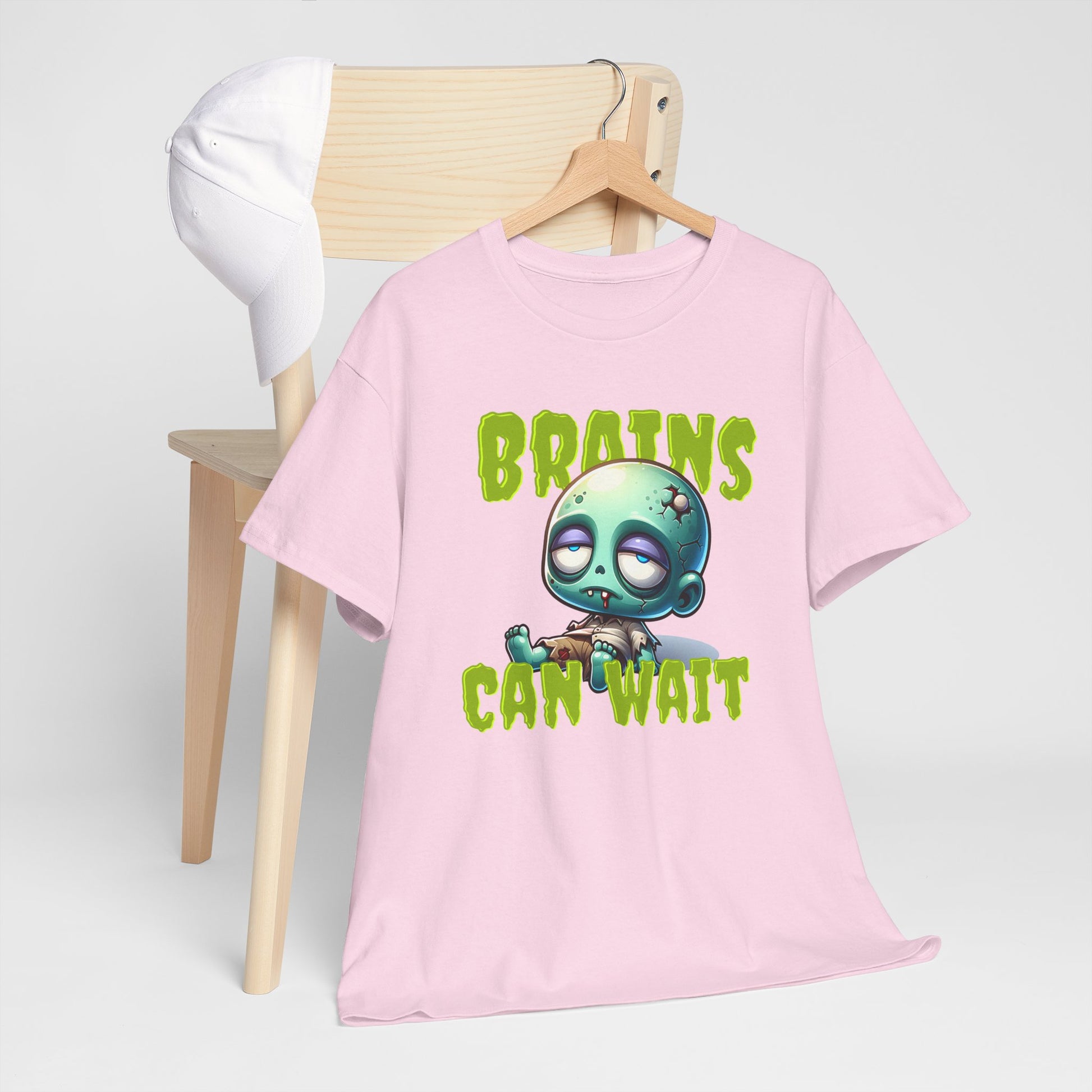 Elevate your casual wardrobe with our Unisex Heavy Cotton Tee, designed for comfort and playful style. Featuring a quirky print that reads 'Brains Can Wait,' this tee is perfect for anyone who loves a dash of humor in their outfit. Ideal for gatherings, Halloween festivities, or just lounging at home, it embodies a fun, laid-back vibe that invites smiles and laughter. Its classic fit and soft fabric ensure you'll feel comfy all day, making it a fantastic addition to your everyday essentials. Whether you're gifting a friend or treating yourself, this tee is a must-have for those who appreciate a lighthearted approach to fashion. Suitable for men and women alike, it’s the perfect choice for Halloween parties, casual hangouts, or just having fun with your style. Celebrate quirky humor and express your personality with this unique piece!