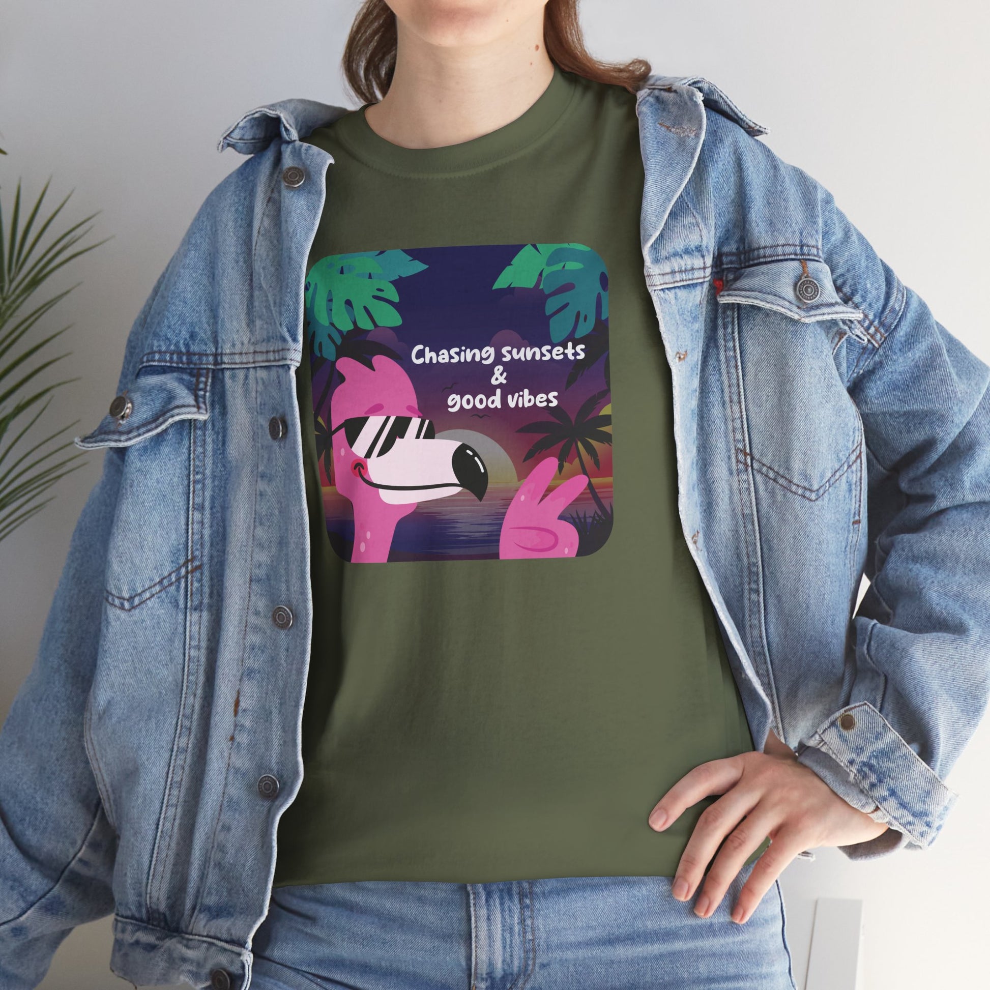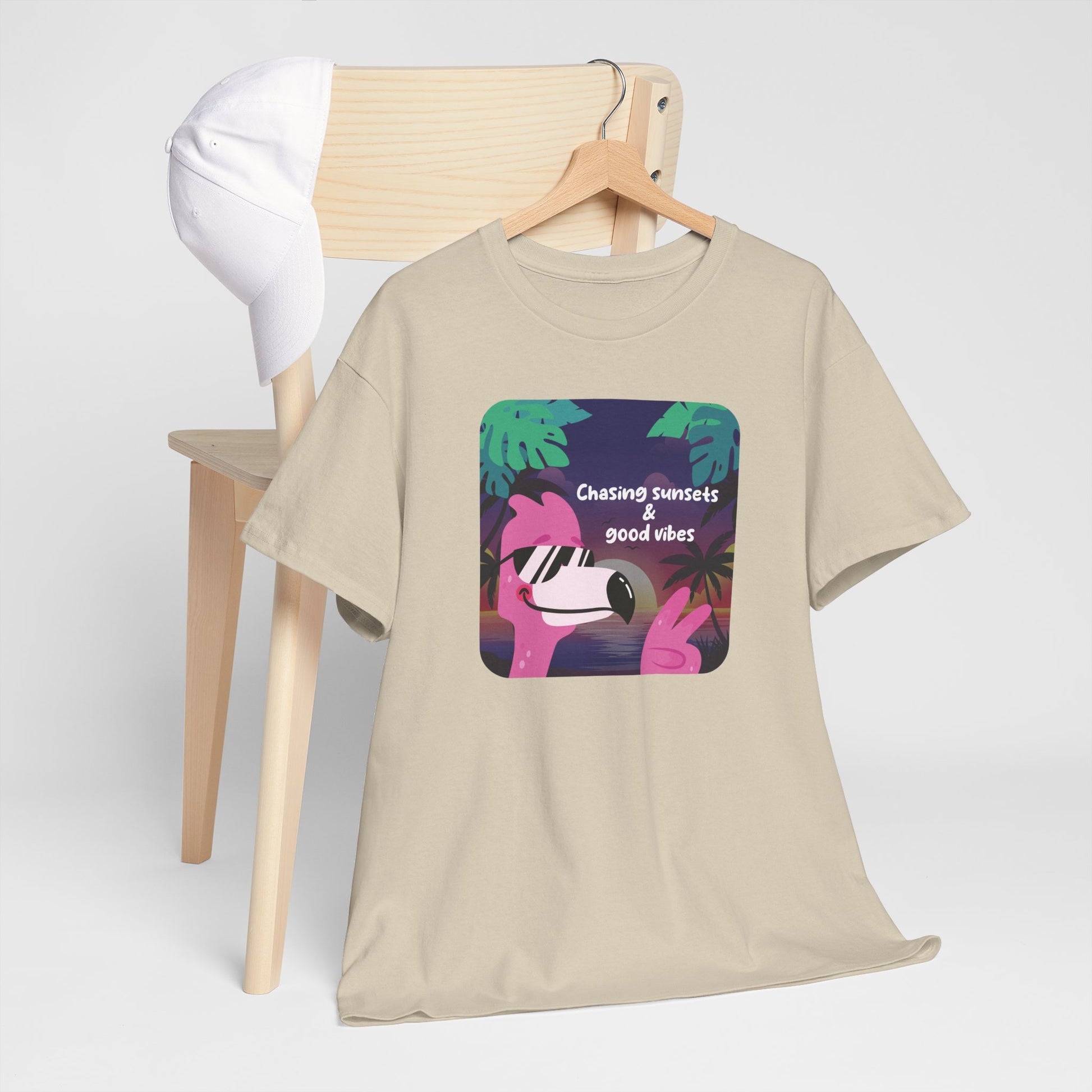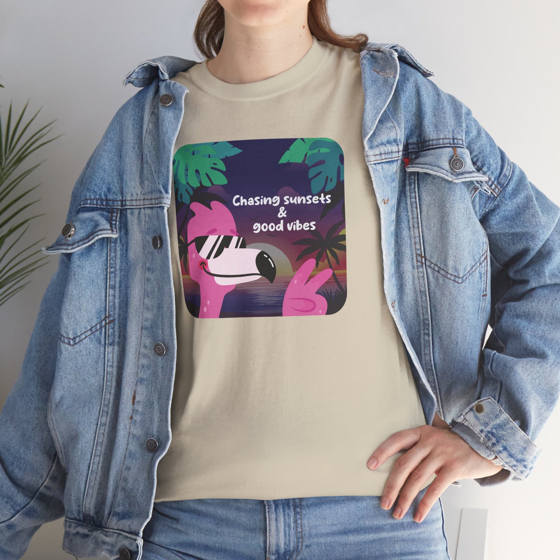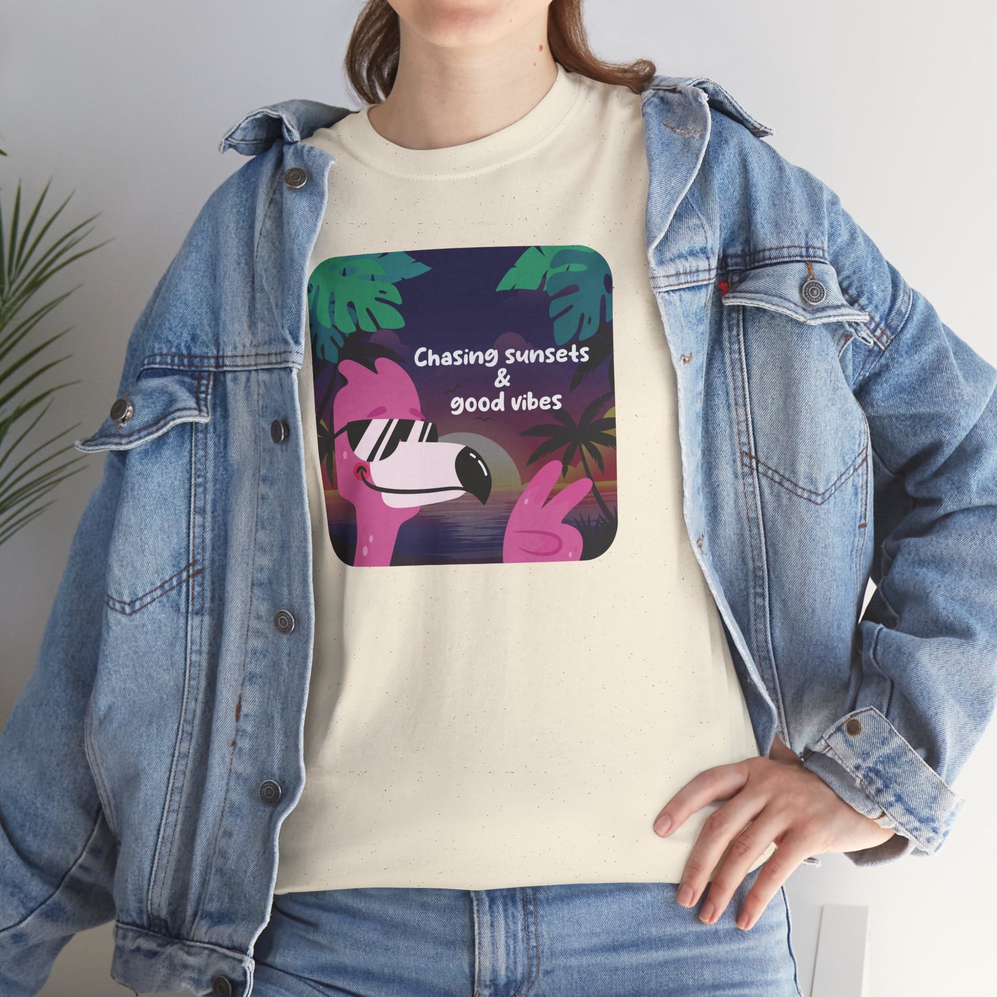 Elevate your everyday style with this Unisex Heavy Cotton Tee, designed for comfort and versatility. With its vibrant graphic featuring whimsical flamingos and a positive message, this shirt adds a fun touch to your wardrobe. Perfect for casual outings, beach days, or simply lounging at home, it effortlessly matches your relaxed vibe. Ideal for those who love to express their personality and spread good energy, this tee is a fantastic gift for friends, family, or anyone who embraces life's cheerful moments. Great for summer celebrations, holidays, or just to brighten someone's day!