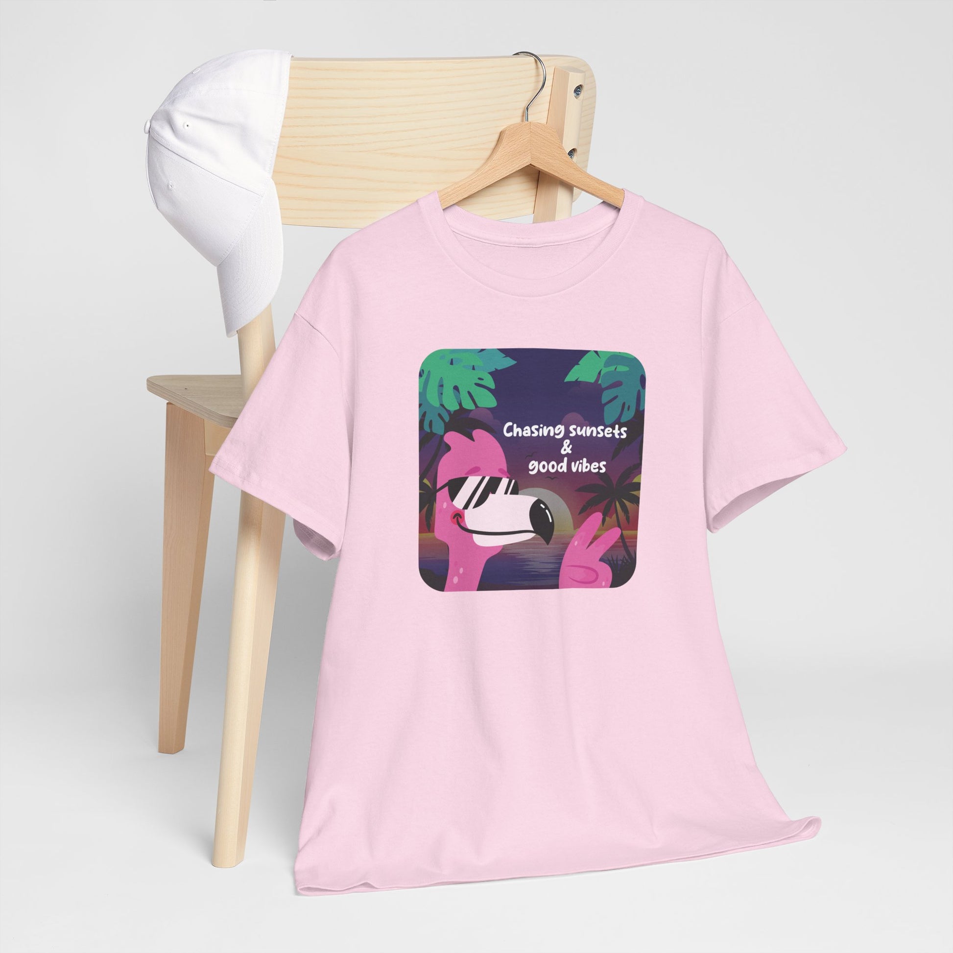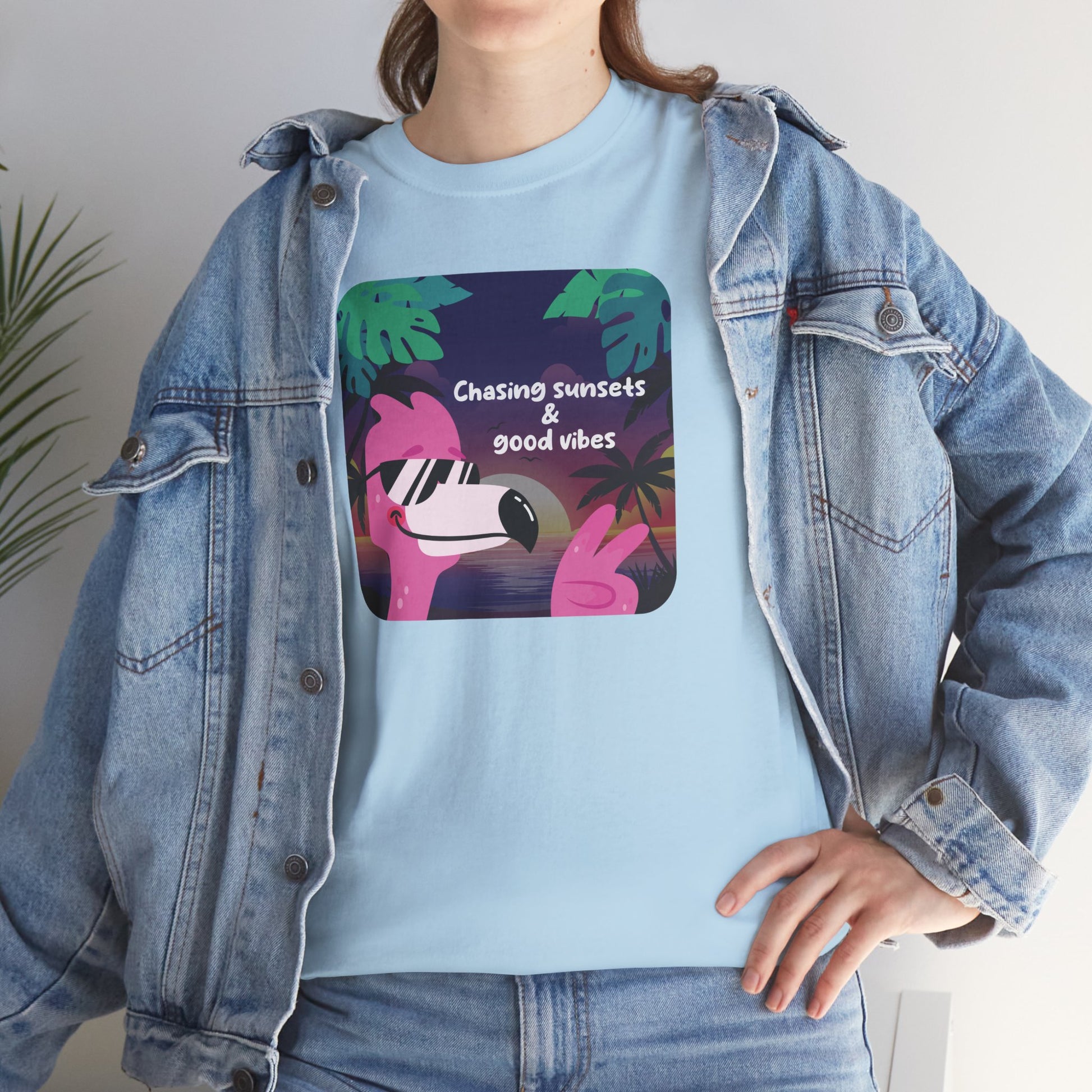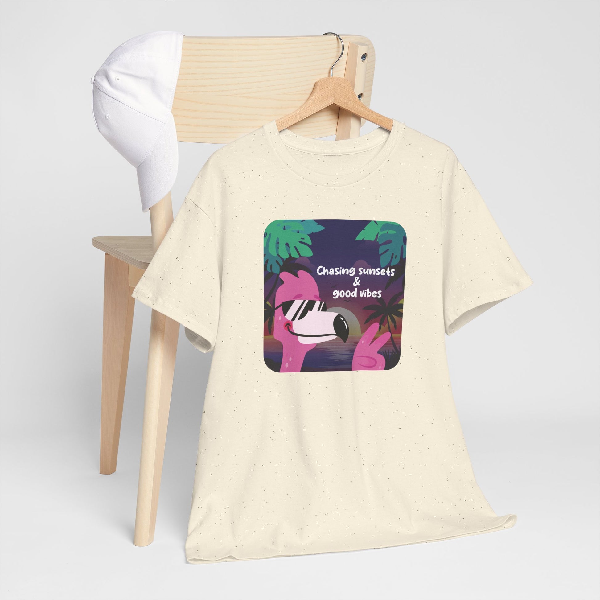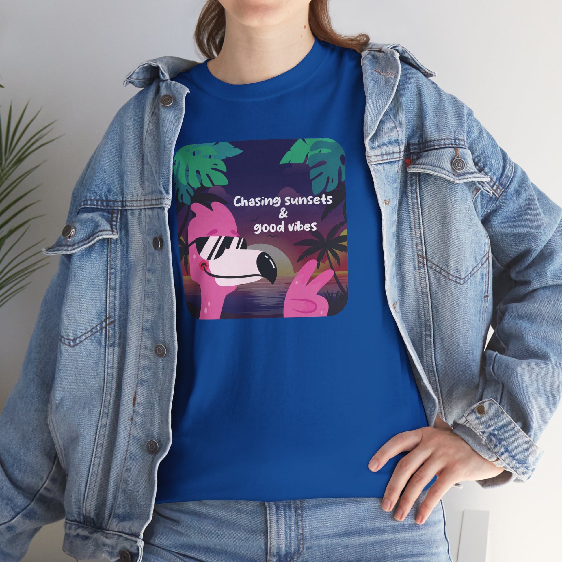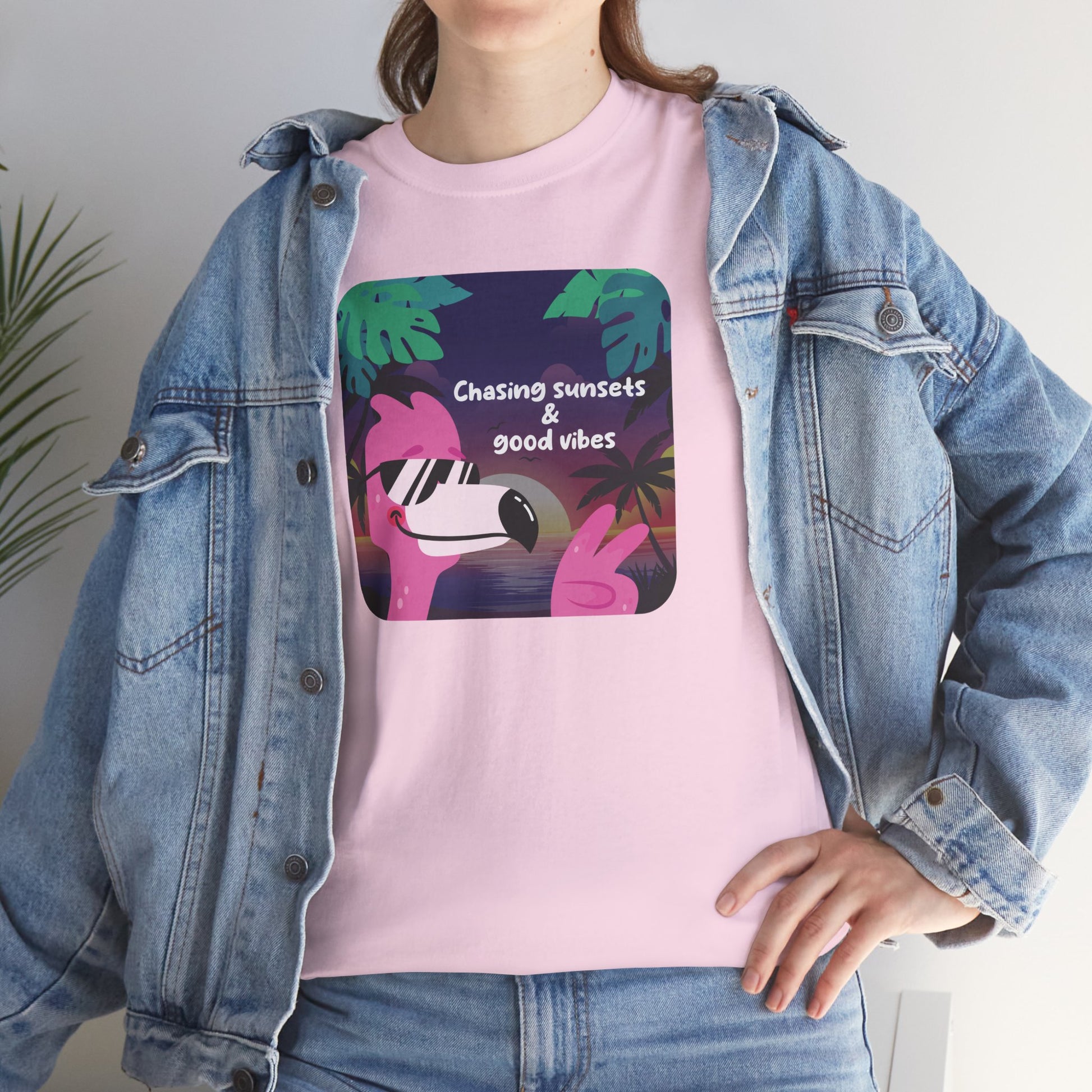 Elevate your everyday style with this Unisex Heavy Cotton Tee, designed for comfort and versatility. With its vibrant graphic featuring whimsical flamingos and a positive message, this shirt adds a fun touch to your wardrobe. Perfect for casual outings, beach days, or simply lounging at home, it effortlessly matches your relaxed vibe. Ideal for those who love to express their personality and spread good energy, this tee is a fantastic gift for friends, family, or anyone who embraces life's cheerful moments. Great for summer celebrations, holidays, or just to brighten someone's day!