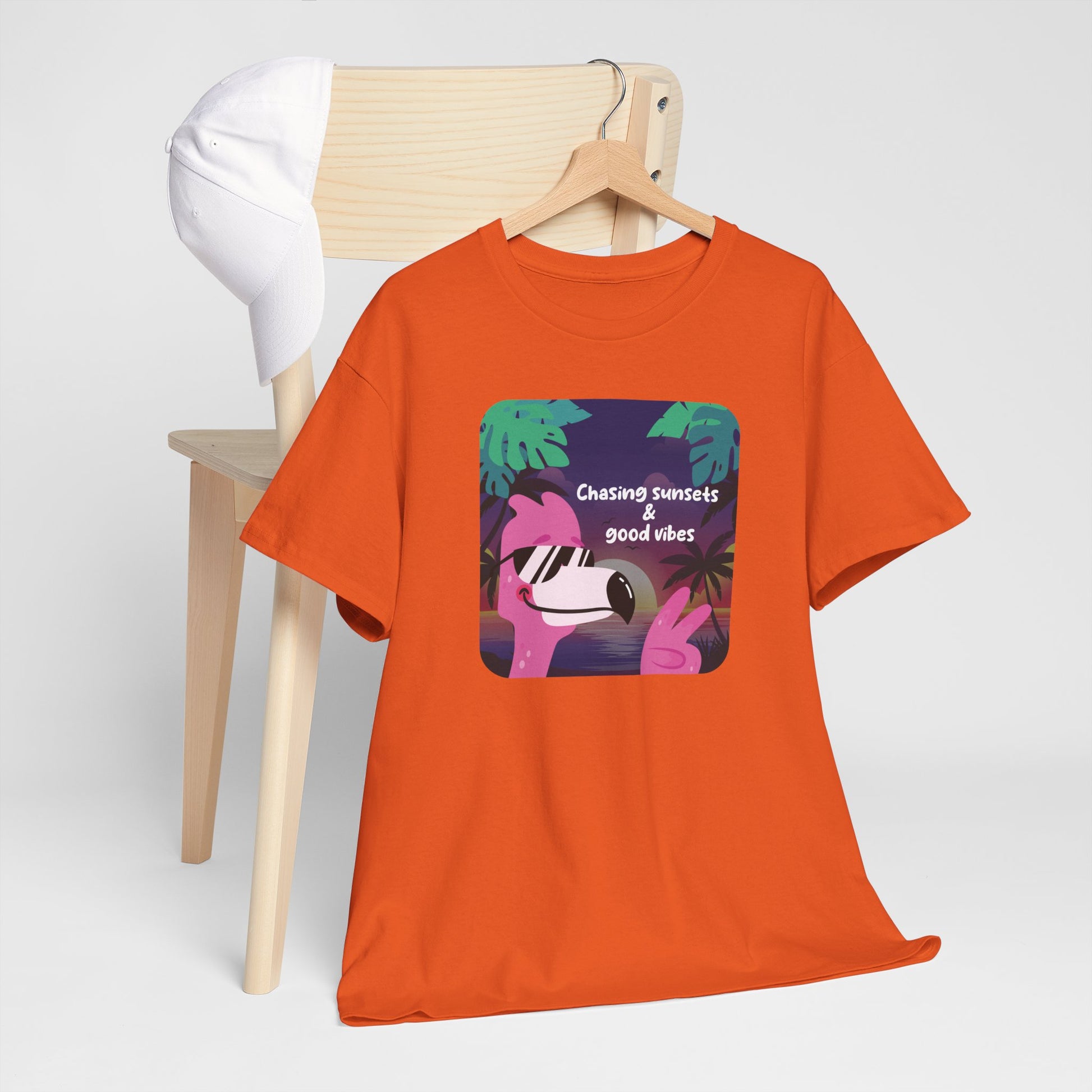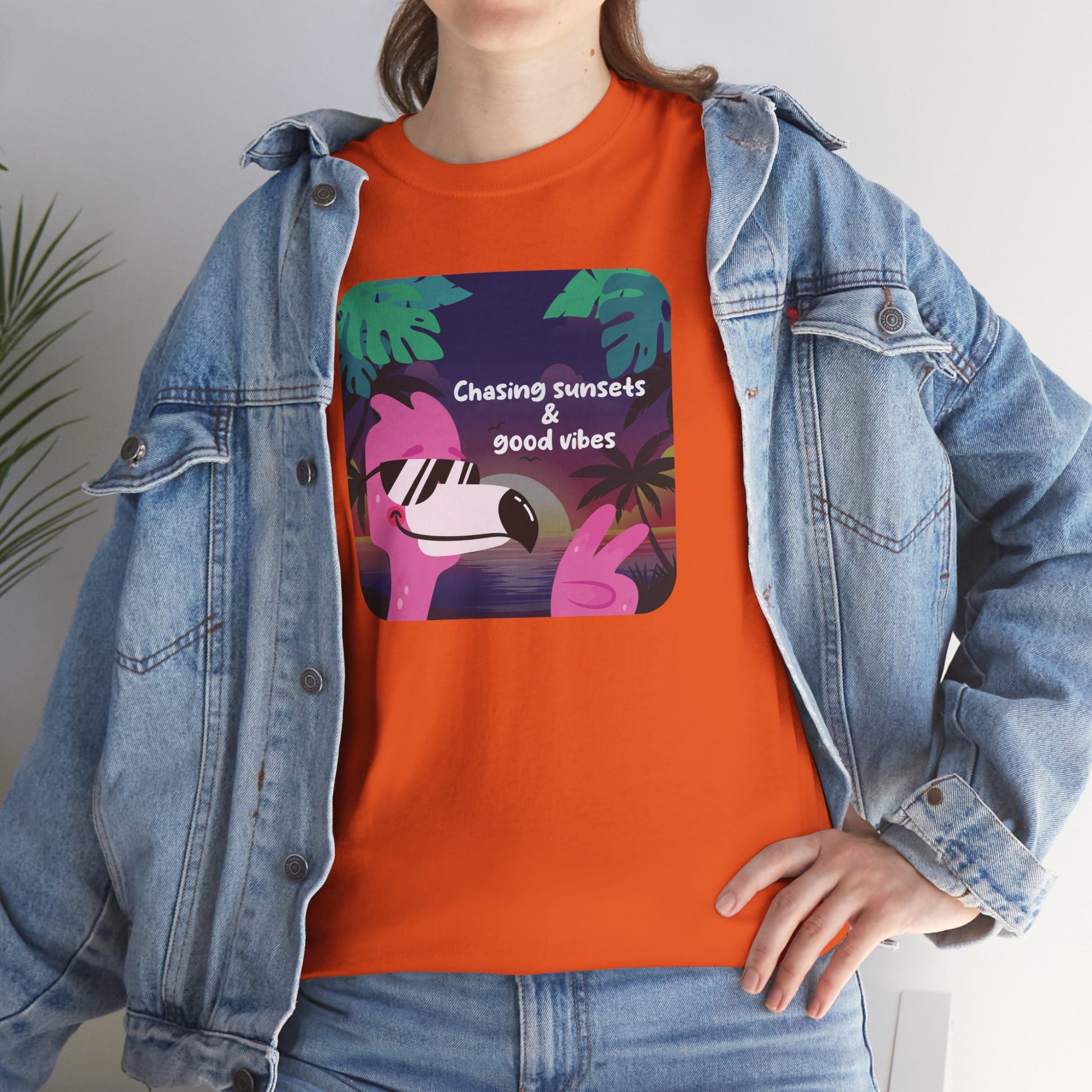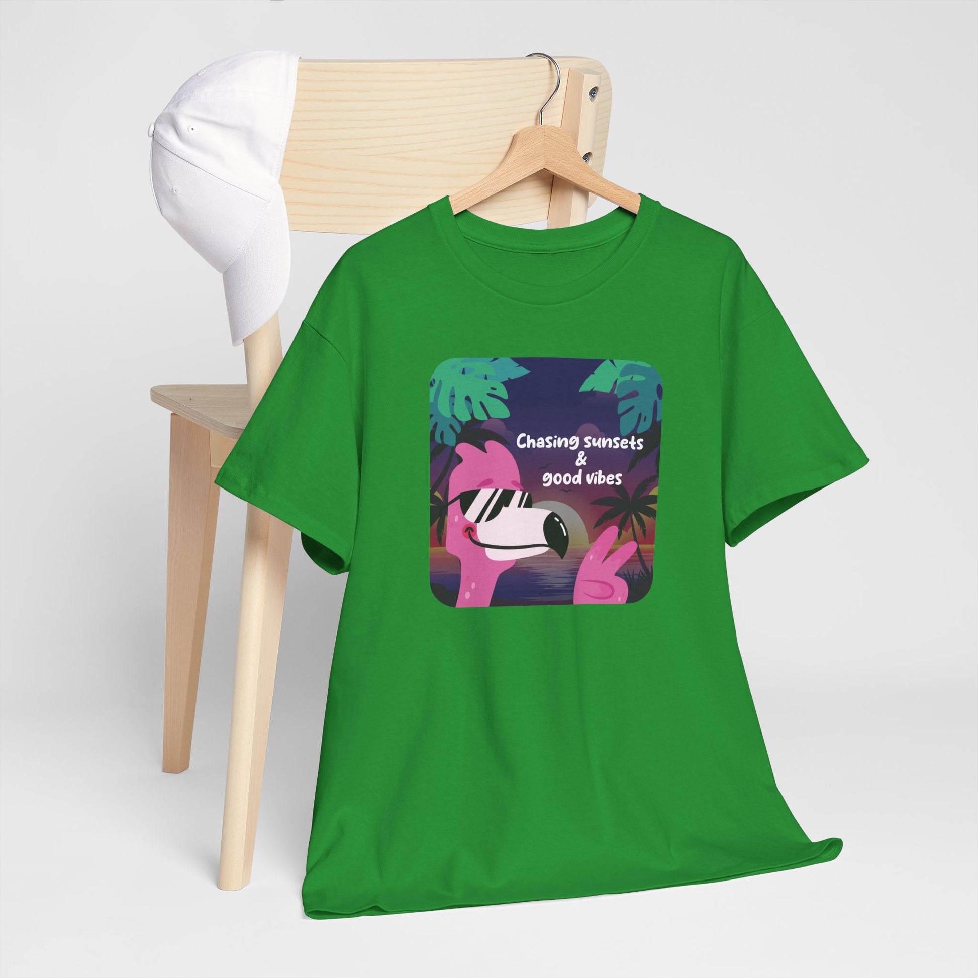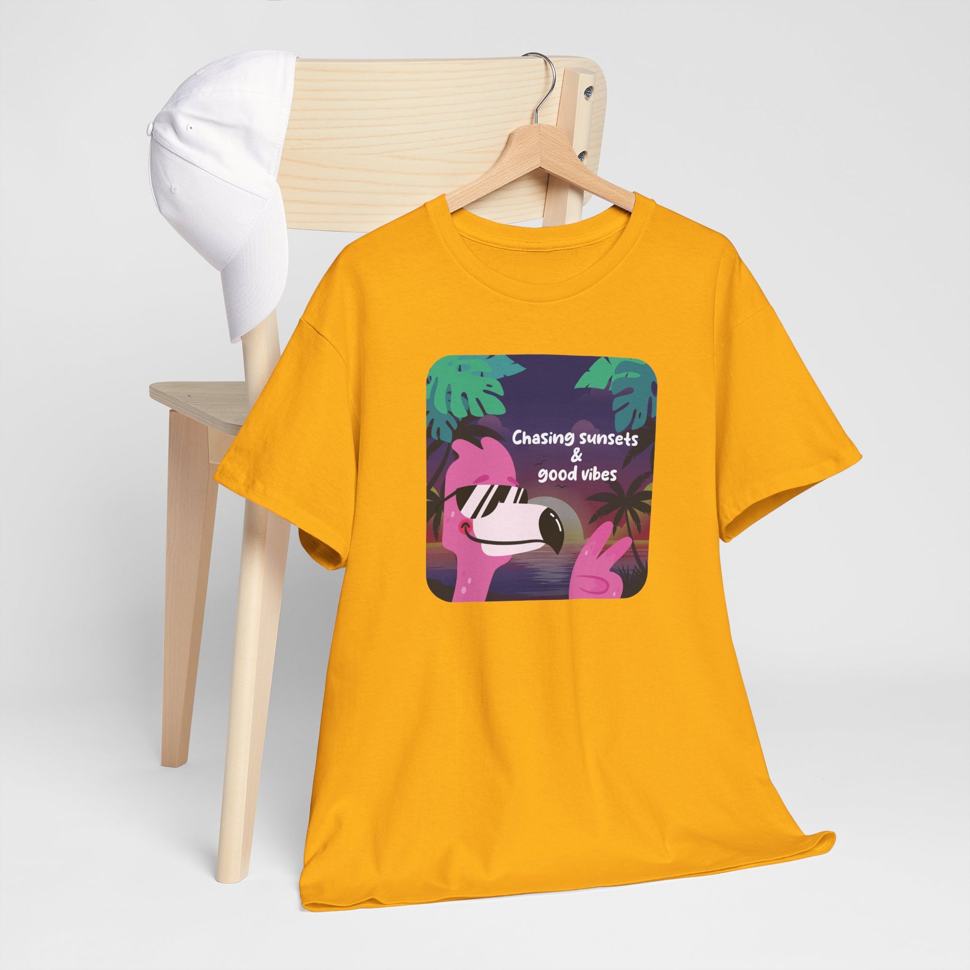 Elevate your everyday style with this Unisex Heavy Cotton Tee, designed for comfort and versatility. With its vibrant graphic featuring whimsical flamingos and a positive message, this shirt adds a fun touch to your wardrobe. Perfect for casual outings, beach days, or simply lounging at home, it effortlessly matches your relaxed vibe. Ideal for those who love to express their personality and spread good energy, this tee is a fantastic gift for friends, family, or anyone who embraces life's cheerful moments. Great for summer celebrations, holidays, or just to brighten someone's day!