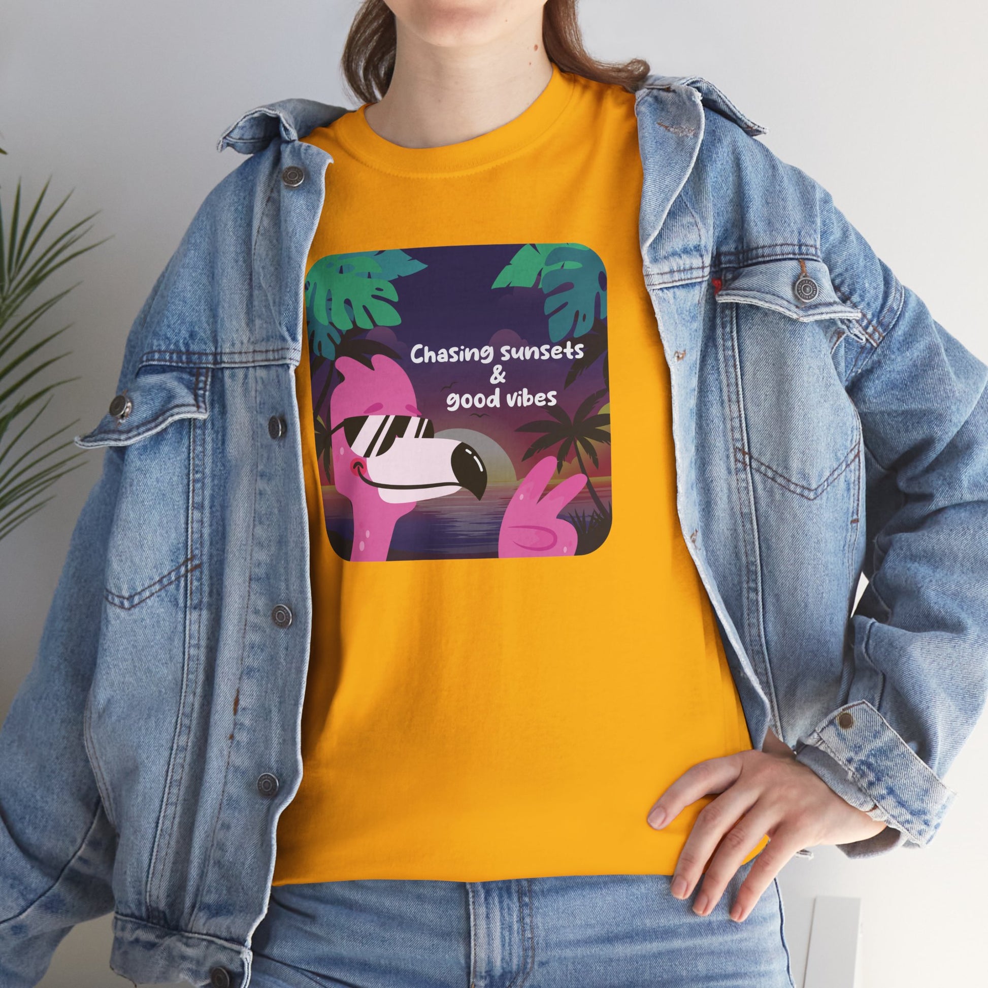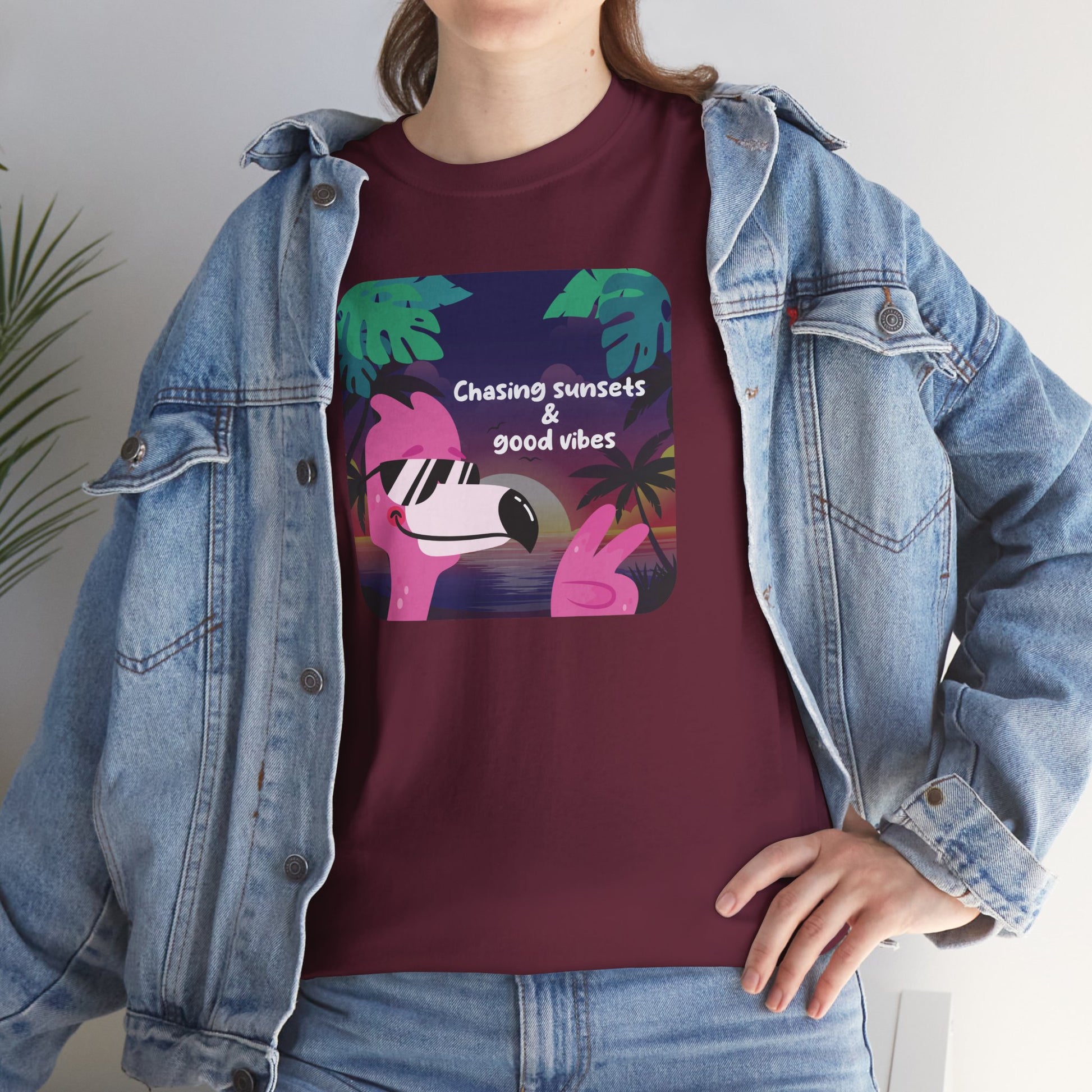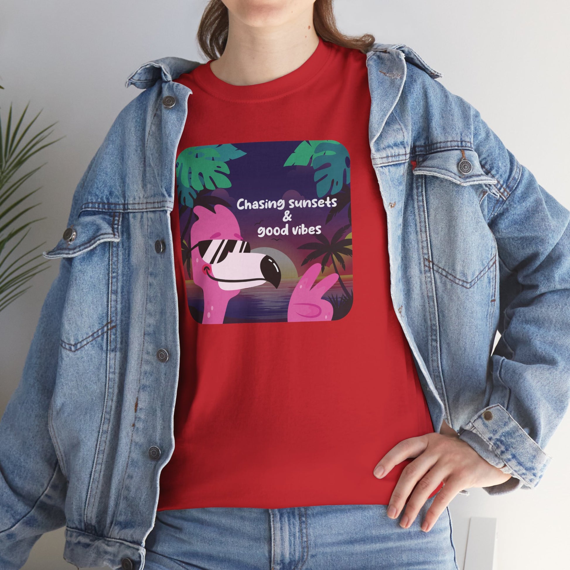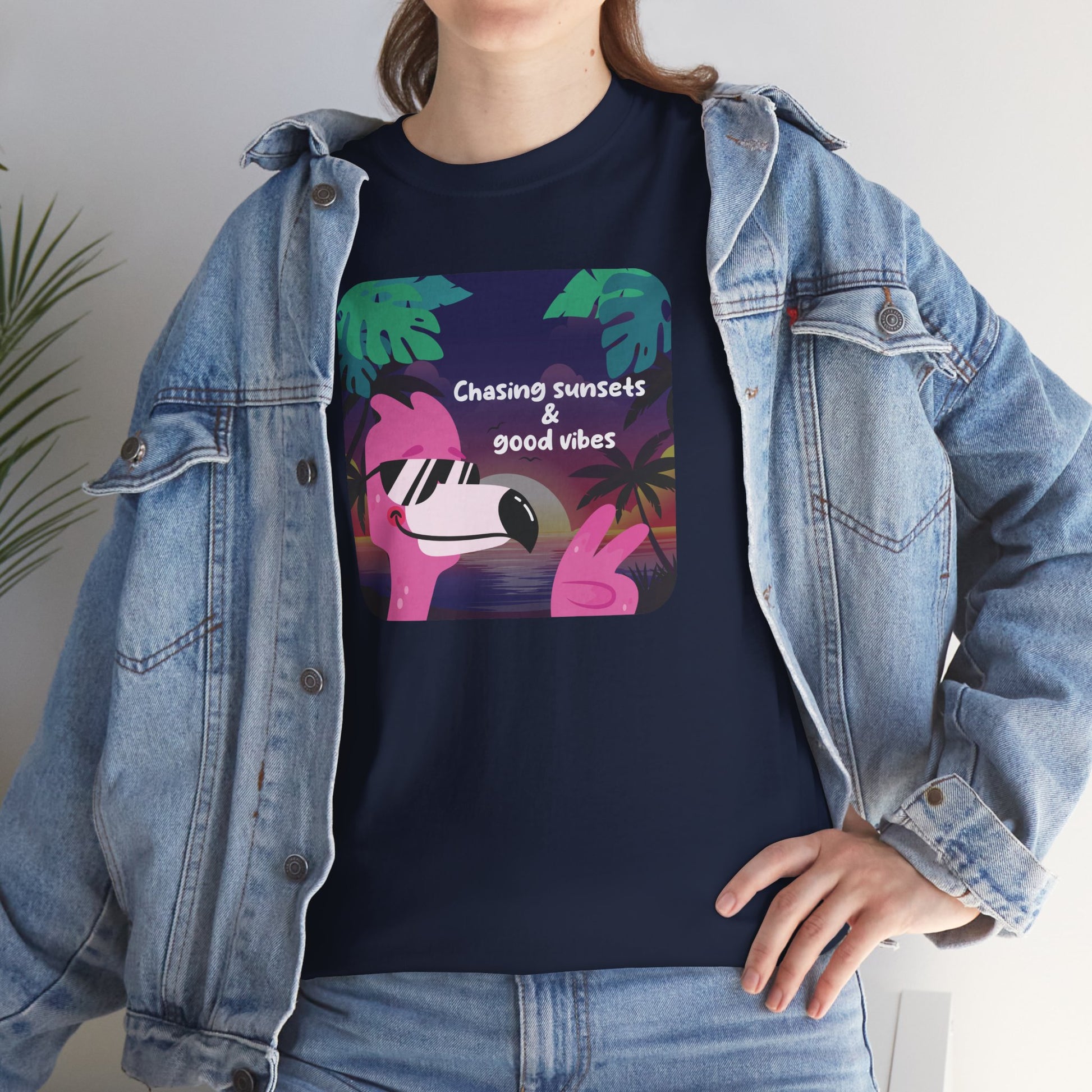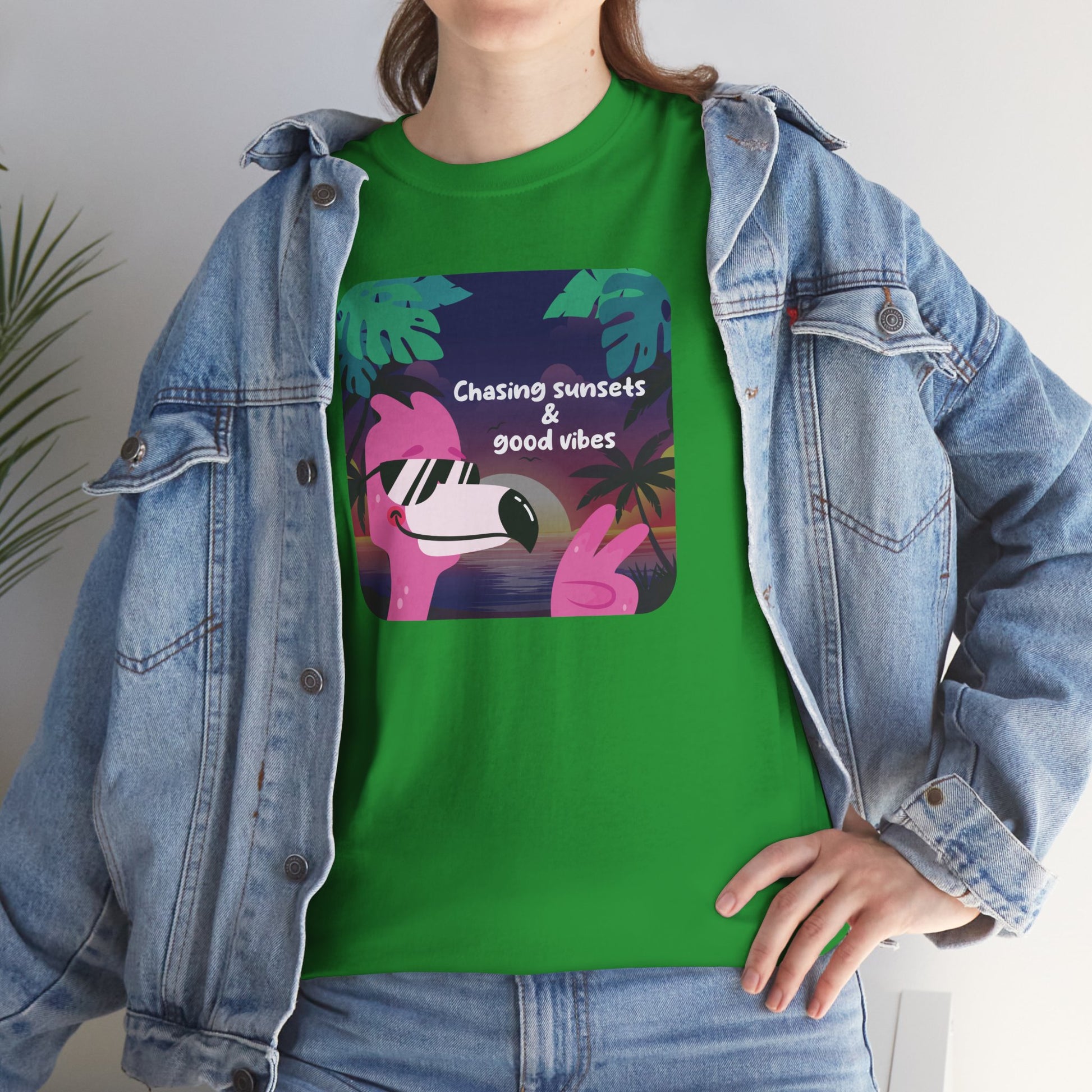 Elevate your everyday style with this Unisex Heavy Cotton Tee, designed for comfort and versatility. With its vibrant graphic featuring whimsical flamingos and a positive message, this shirt adds a fun touch to your wardrobe. Perfect for casual outings, beach days, or simply lounging at home, it effortlessly matches your relaxed vibe. Ideal for those who love to express their personality and spread good energy, this tee is a fantastic gift for friends, family, or anyone who embraces life's cheerful moments. Great for summer celebrations, holidays, or just to brighten someone's day!