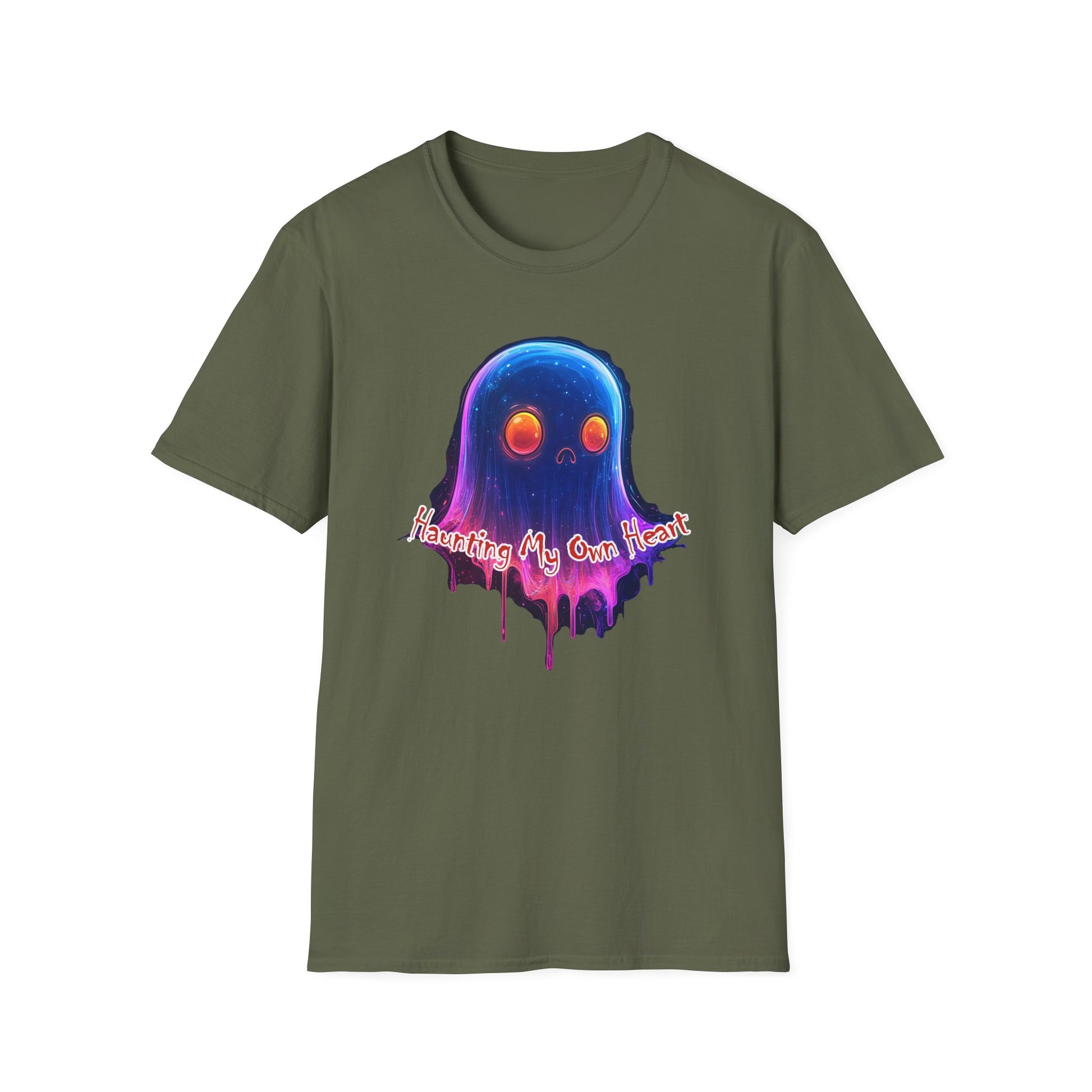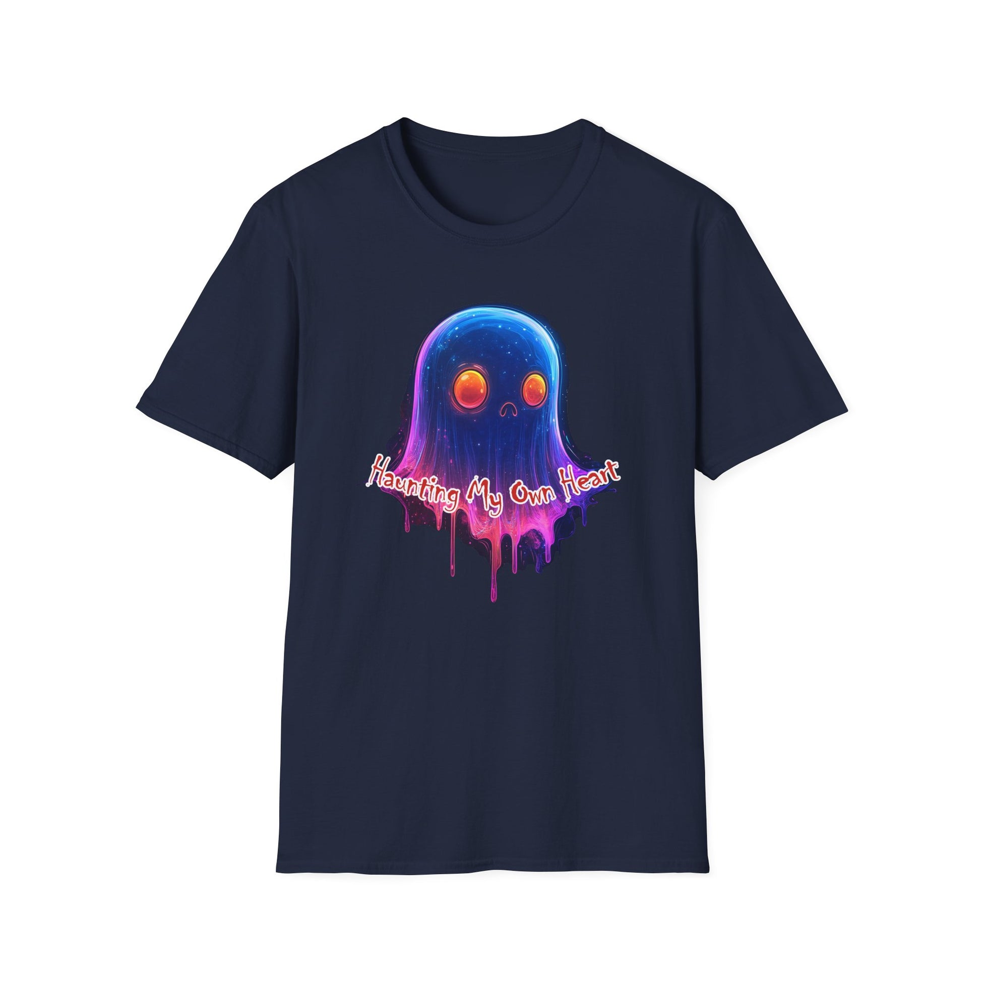 A lightweight, ring-spun cotton tee that wears like a favorite from day one. The front features a dreamy, dripping ghost illustration with warm, glowing eyes and a soft gradient of blues, purples, and pinks—an artful blend of whimsy and late-night nostalgia. The classic crew cut and clean lines keep the look easy to layer under jackets or pair with relaxed denim. Breathable and smooth, the fabric holds vibrant prints without losing that lived-in softness. This shirt feels like a small, personal talisman you reach for when you want to wear something playful, slightly spooky, and unmistakably you.