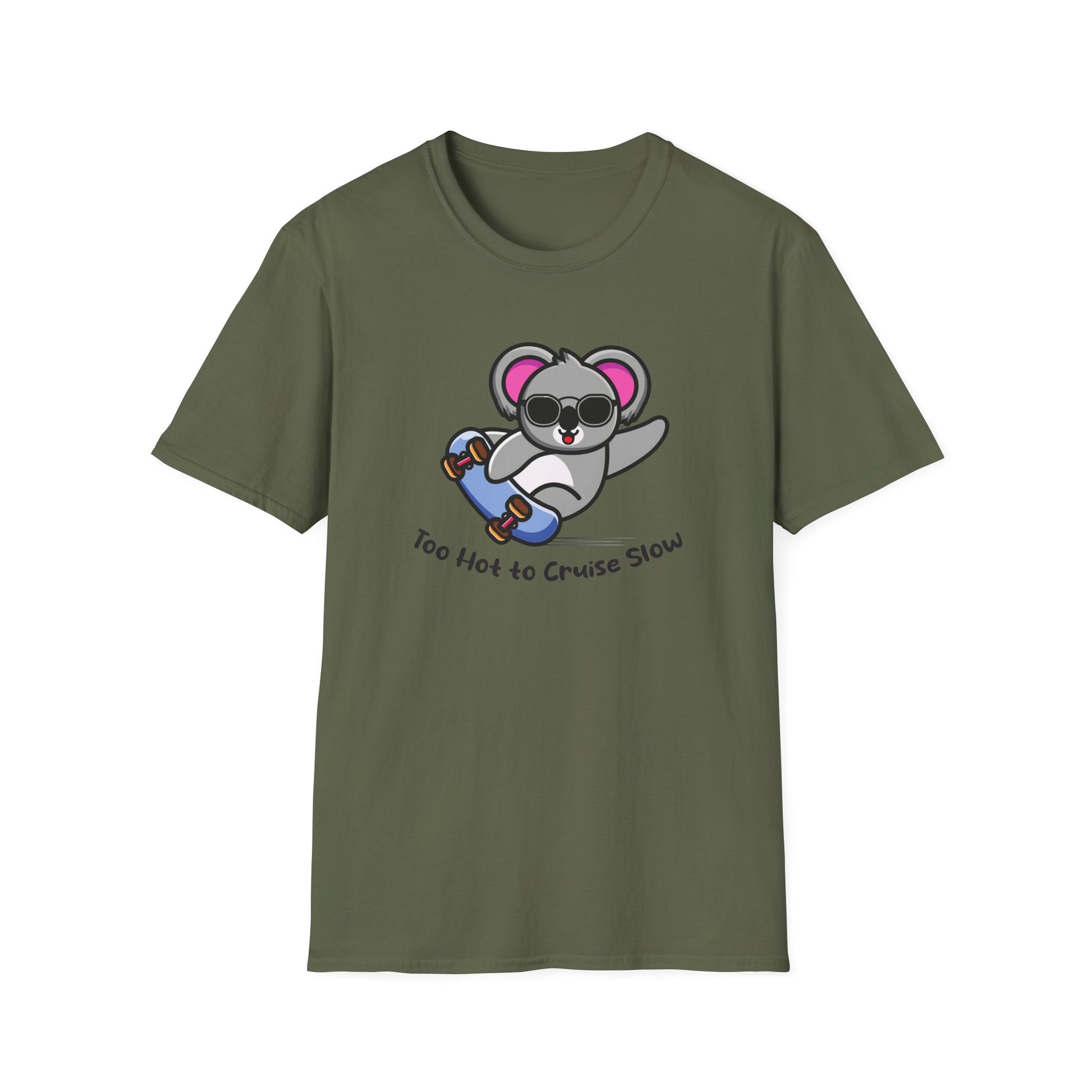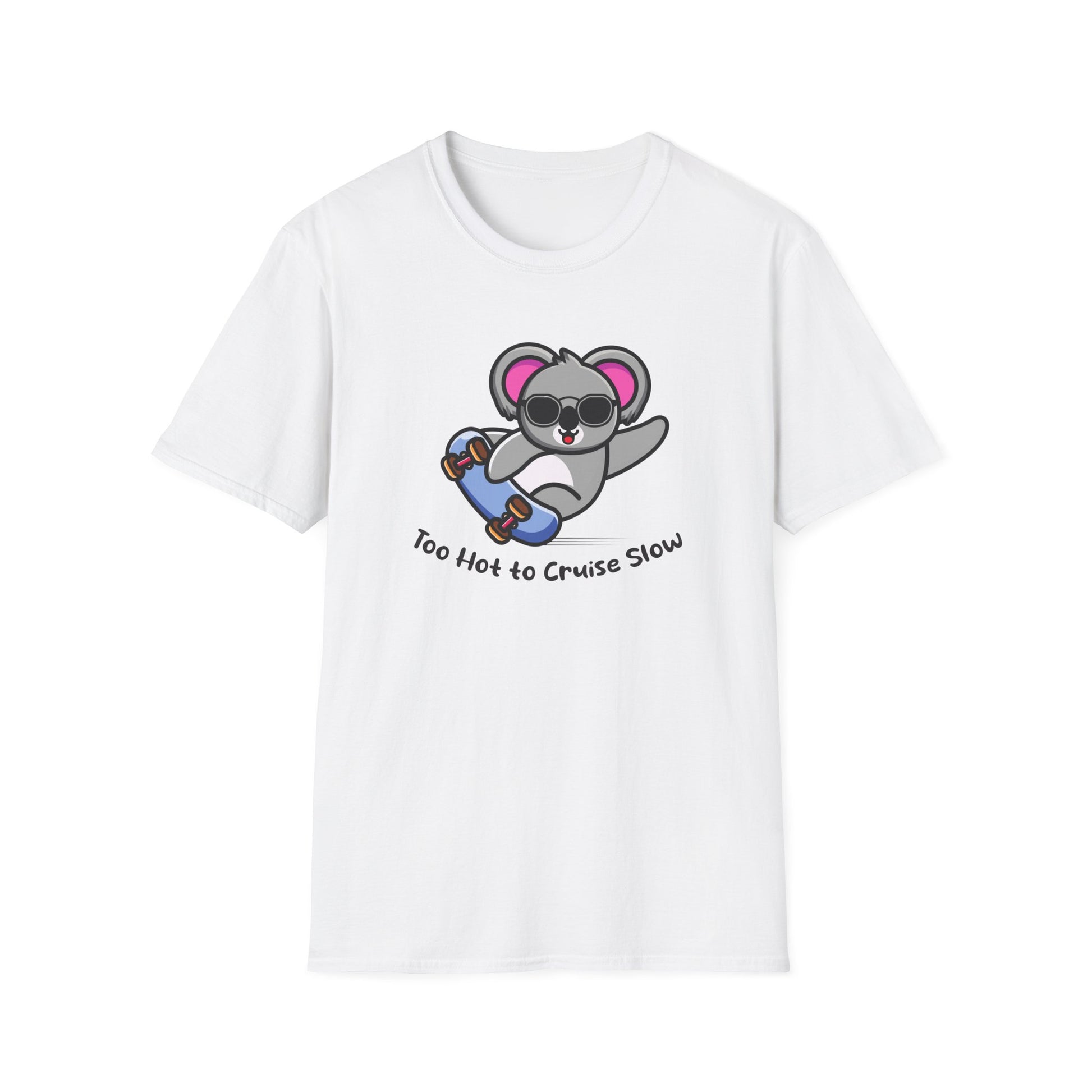 A soft, lightweight cotton tee that brings a playful, sunny energy to casual days. The front shows a chill koala wearing sunglasses and riding a skateboard, with the phrase “Too Hot to Cruise Slow” curving beneath—bright, fun, and just a little cheeky. The classic crew neck and relaxed cut let this shirt layer easily under a flannel or stand alone on warm afternoons. Wear it to the boardwalk, on beach drives, or when you want to channel a laid-back, adventurous mood. The smooth fabric keeps prints crisp and comfortable, while the tear-away label and stable shoulder tape make it feel thoughtful and well-made on the body.