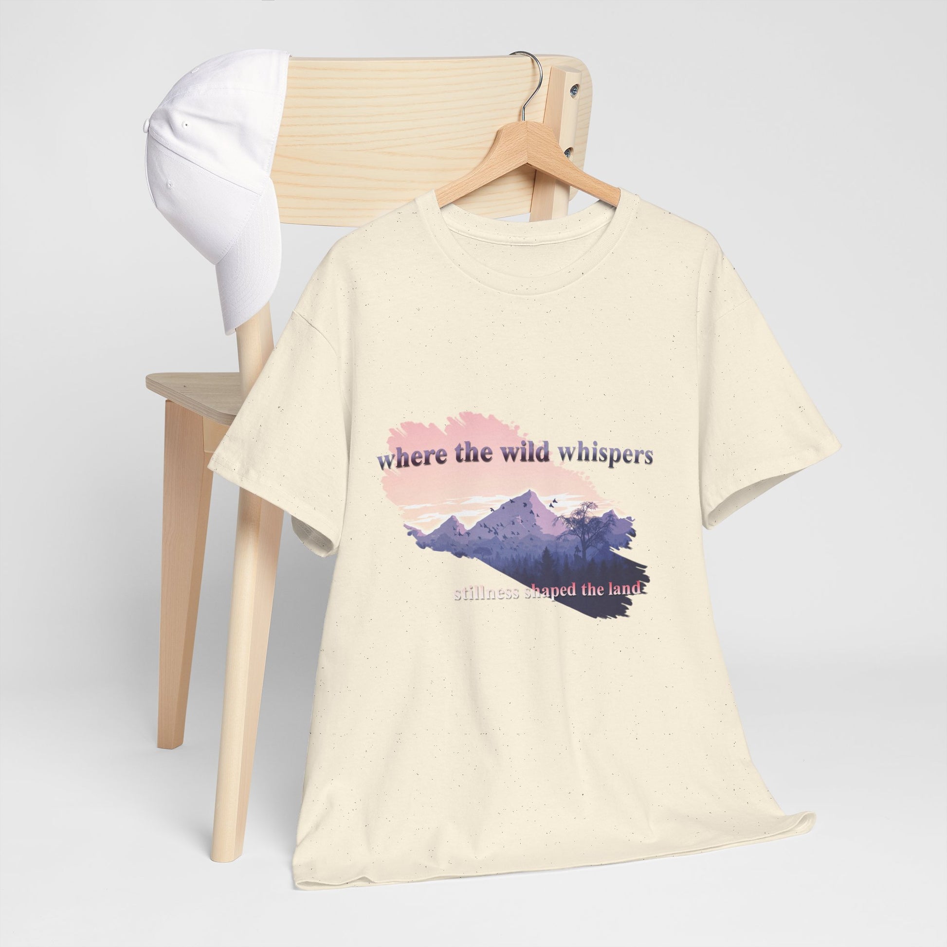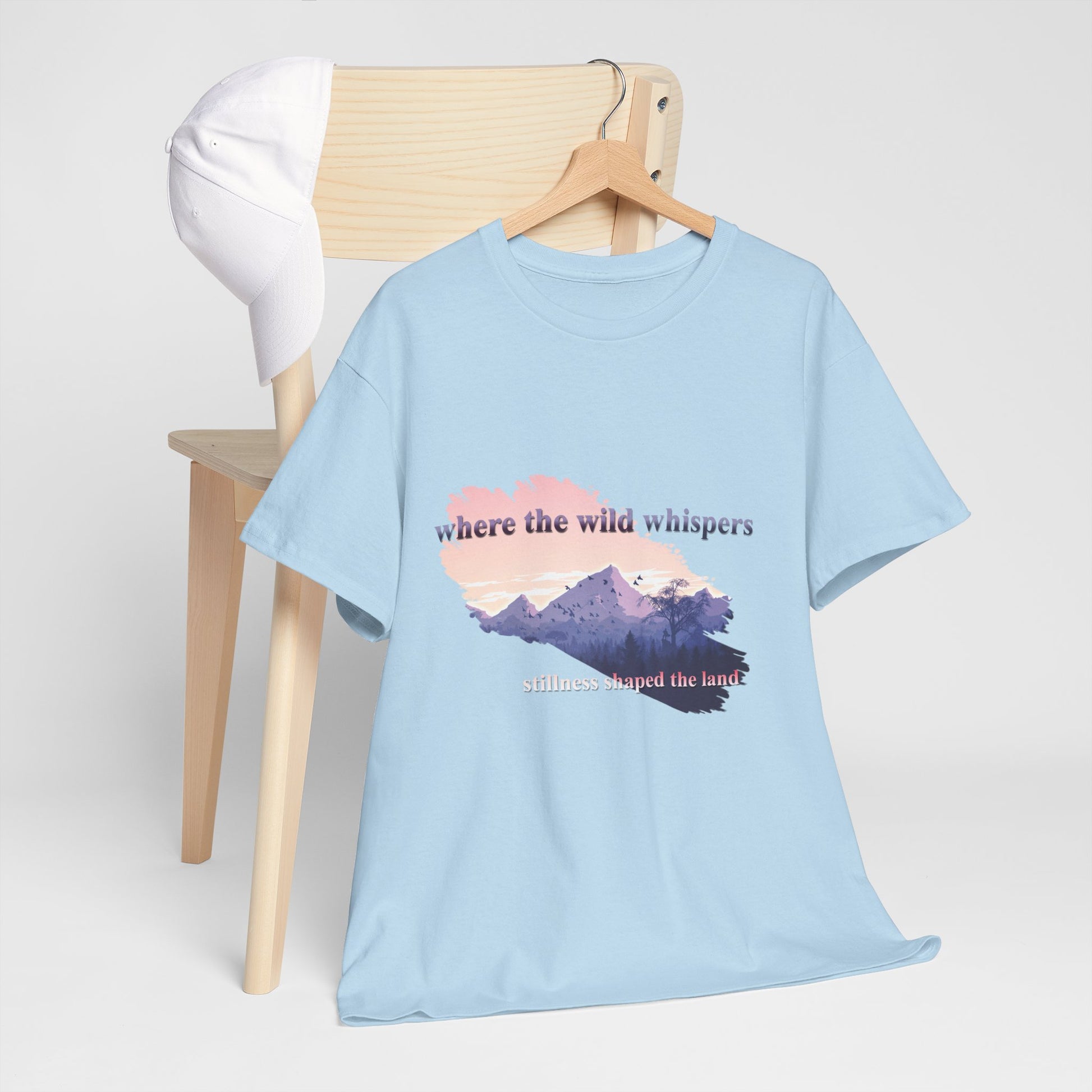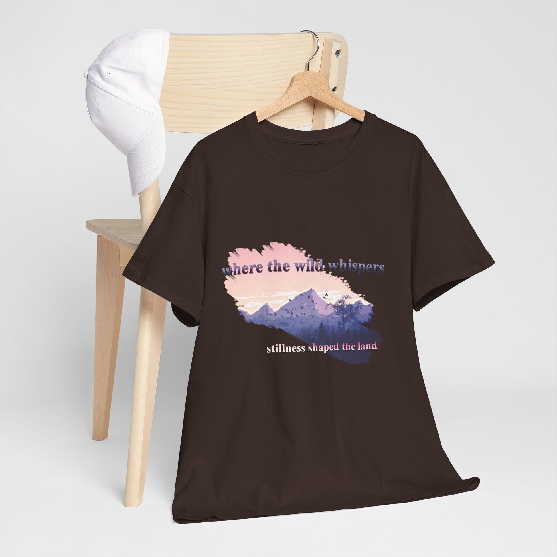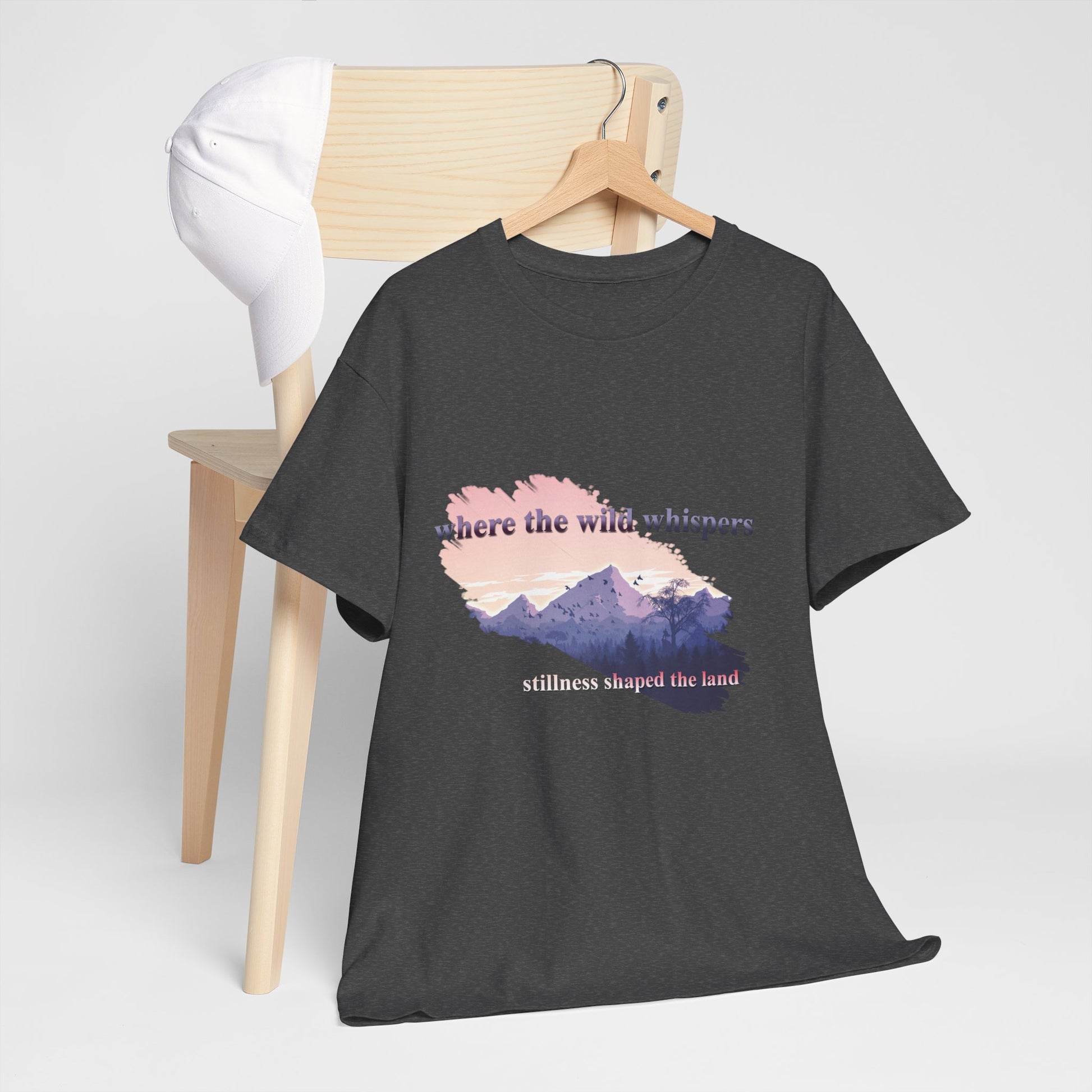 This Unisex Heavy Cotton Tee embodies a spirit of adventure and exploration, perfect for those who find comfort in the wilderness. The design features a serene landscape with the phrase "where the wild whispers," making it an ideal companion for outdoor enthusiasts, nature lovers, or anyone who seeks a tranquil escape. Crafted for both comfort and durability, this t-shirt fits effortlessly into casual or semi-formal settings. It's versatile enough for laid-back gatherings or a day out in nature. Celebrate occasions like Earth Day, summer picnics, or cozy bonfire nights with friends. Gift it to friends or family who cherish the outdoors and appreciate sustainable fashion. Designed for adults, it promises a relaxed fit that enhances everyday wear.