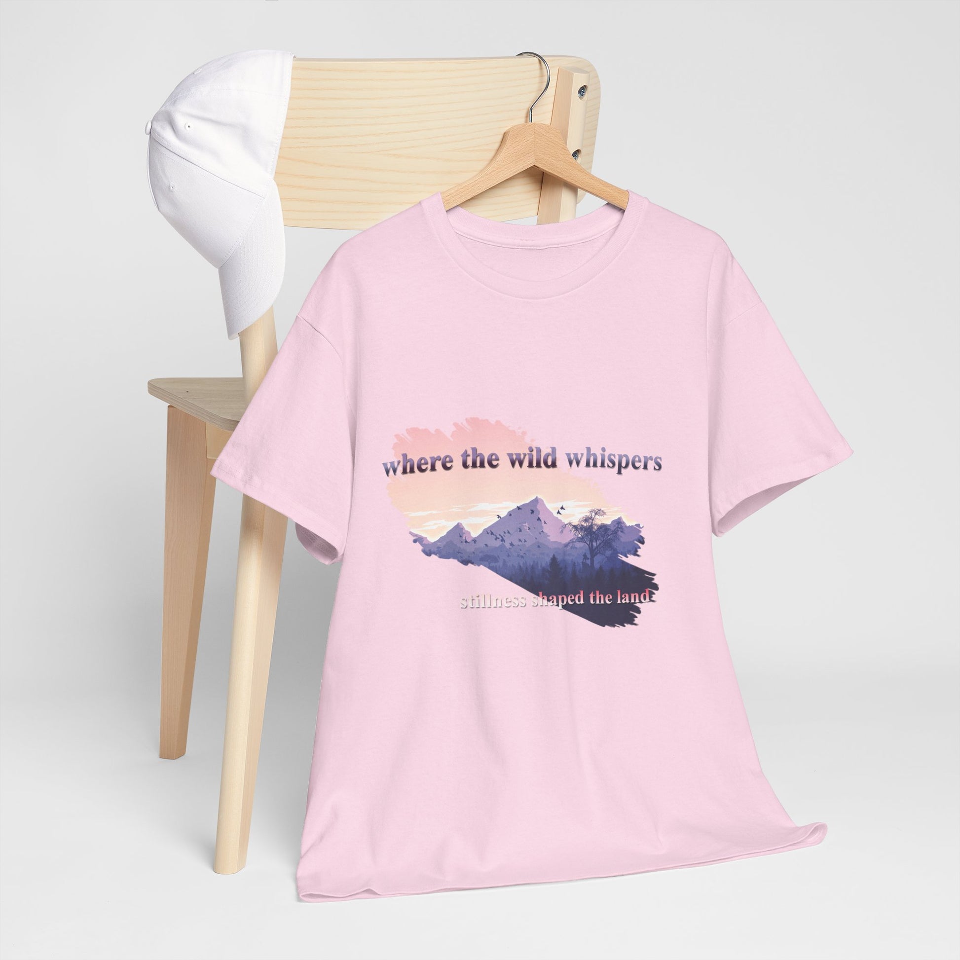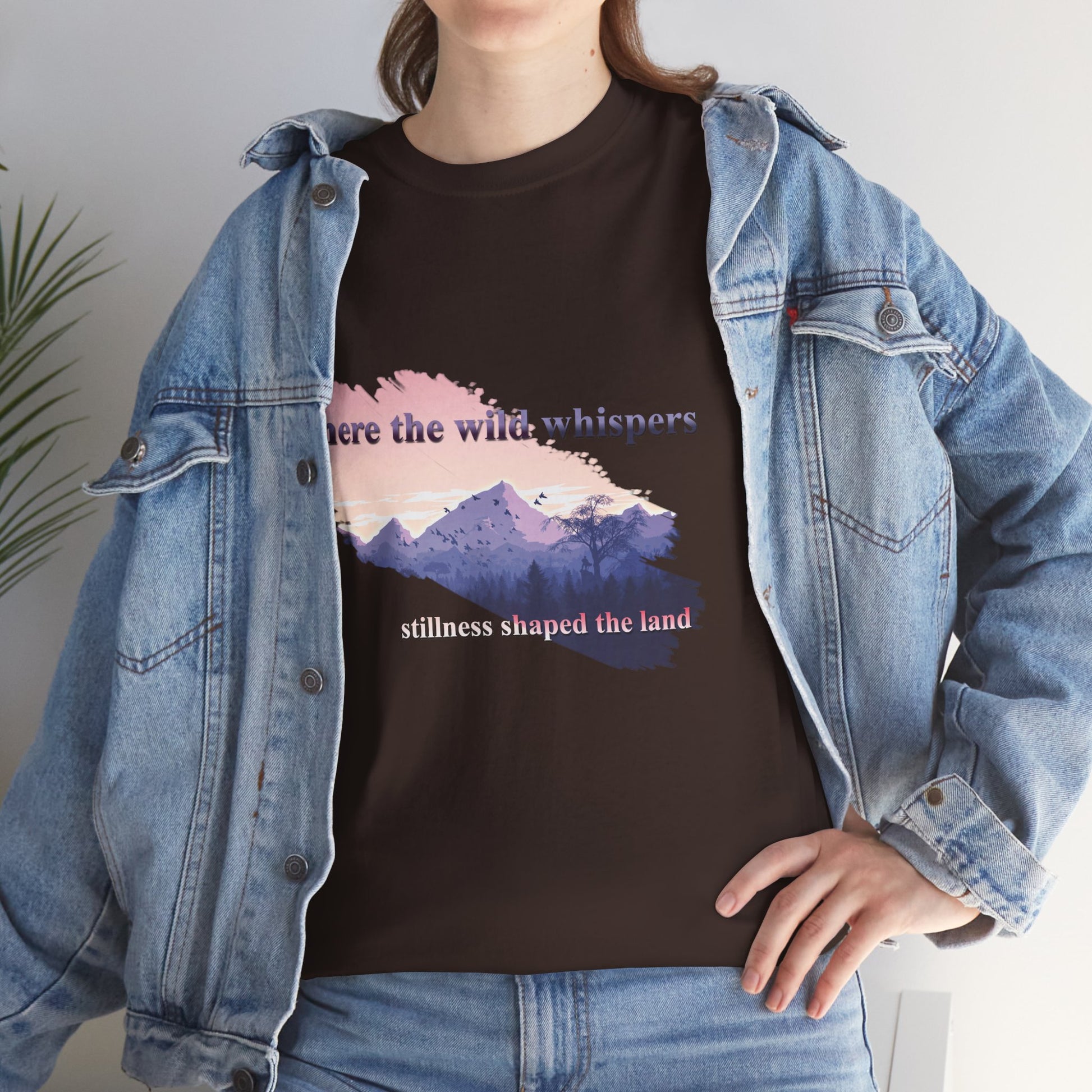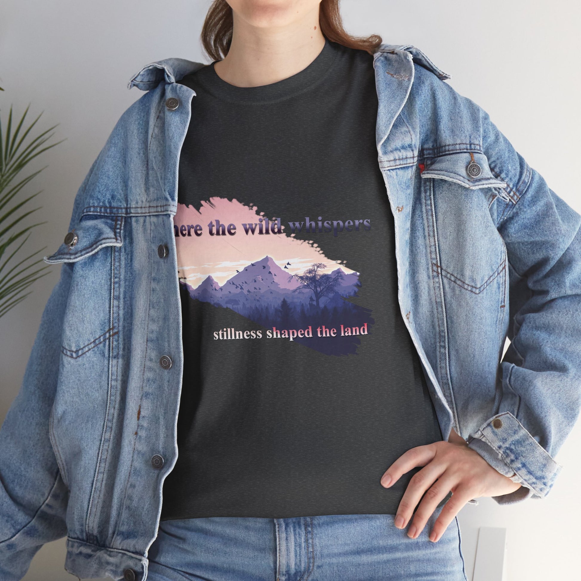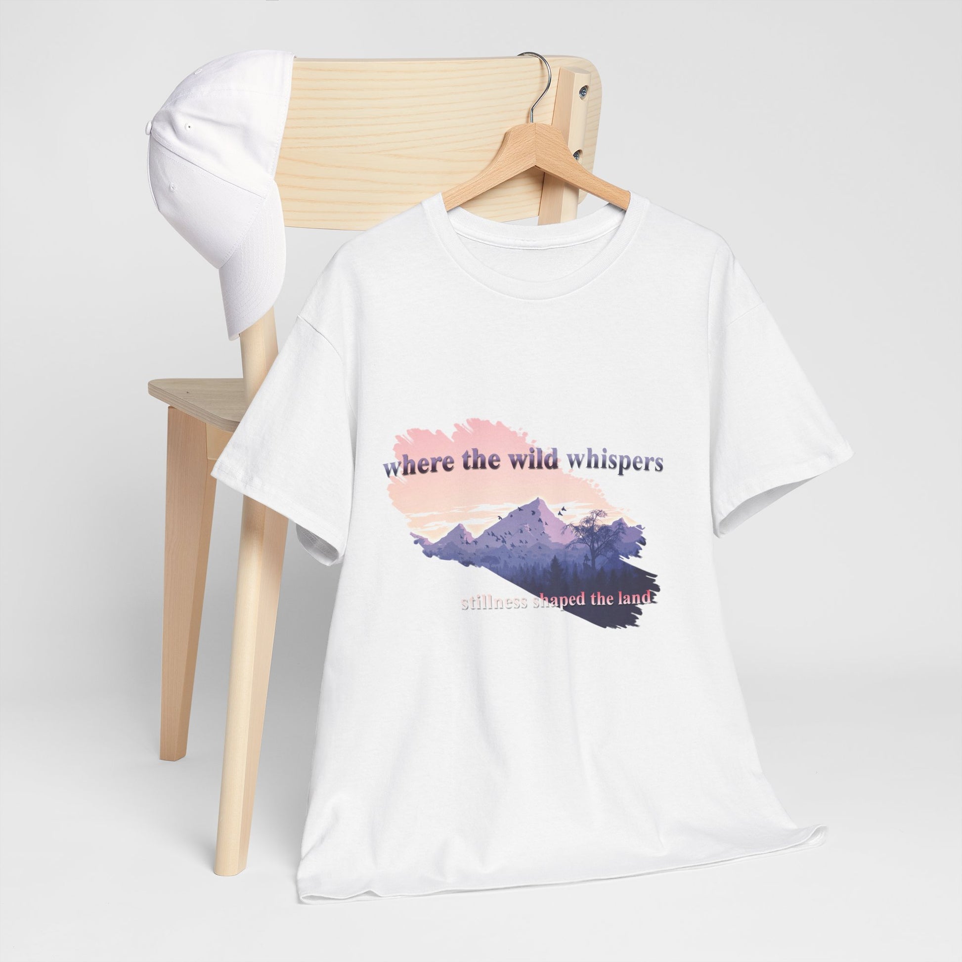 This Unisex Heavy Cotton Tee embodies a spirit of adventure and exploration, perfect for those who find comfort in the wilderness. The design features a serene landscape with the phrase "where the wild whispers," making it an ideal companion for outdoor enthusiasts, nature lovers, or anyone who seeks a tranquil escape. Crafted for both comfort and durability, this t-shirt fits effortlessly into casual or semi-formal settings. It's versatile enough for laid-back gatherings or a day out in nature. Celebrate occasions like Earth Day, summer picnics, or cozy bonfire nights with friends. Gift it to friends or family who cherish the outdoors and appreciate sustainable fashion. Designed for adults, it promises a relaxed fit that enhances everyday wear.