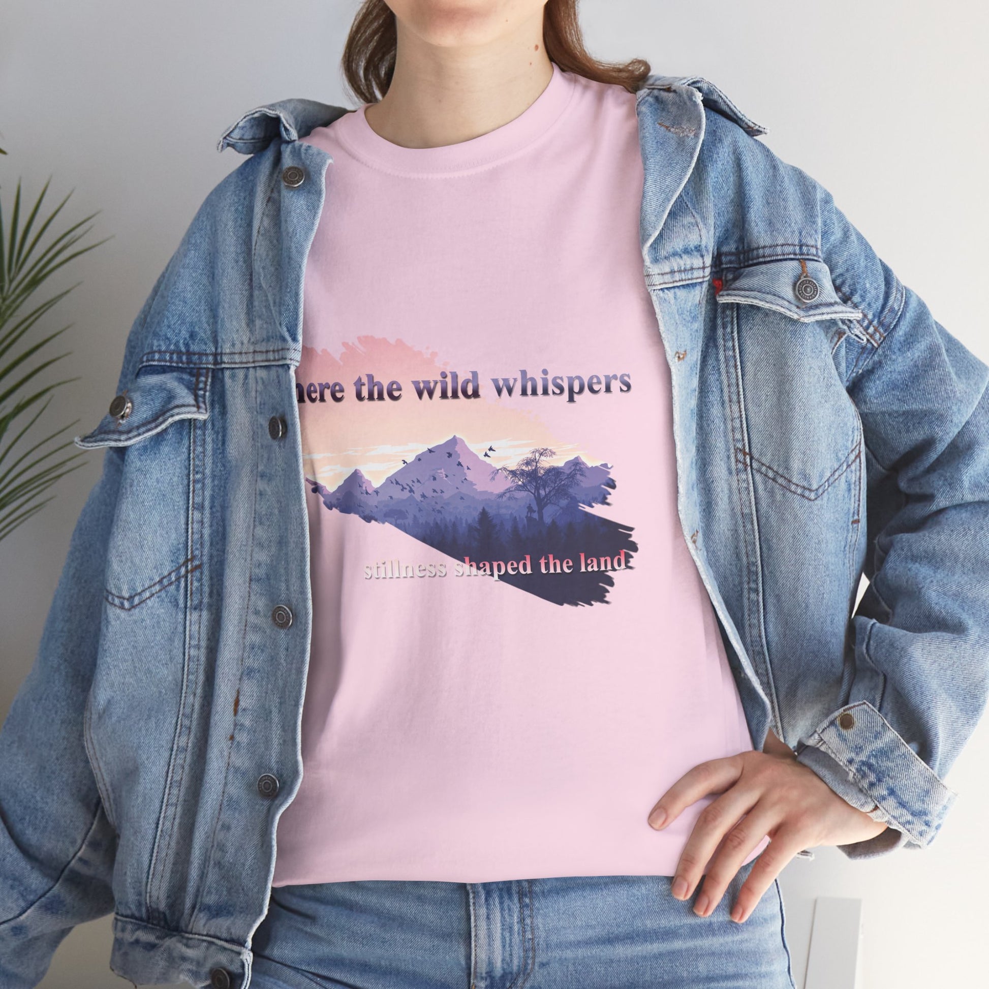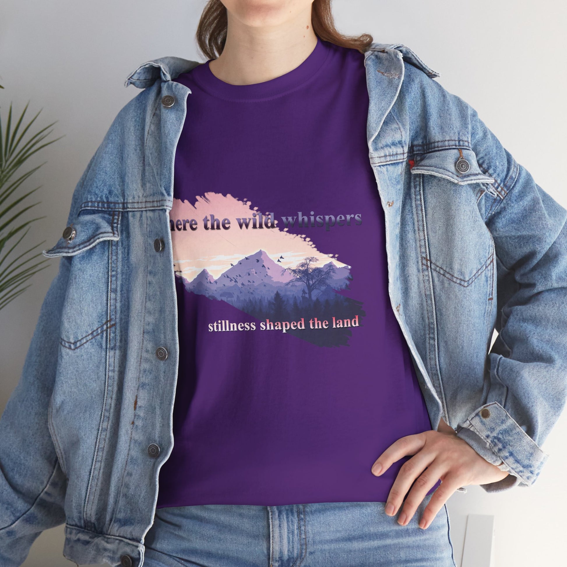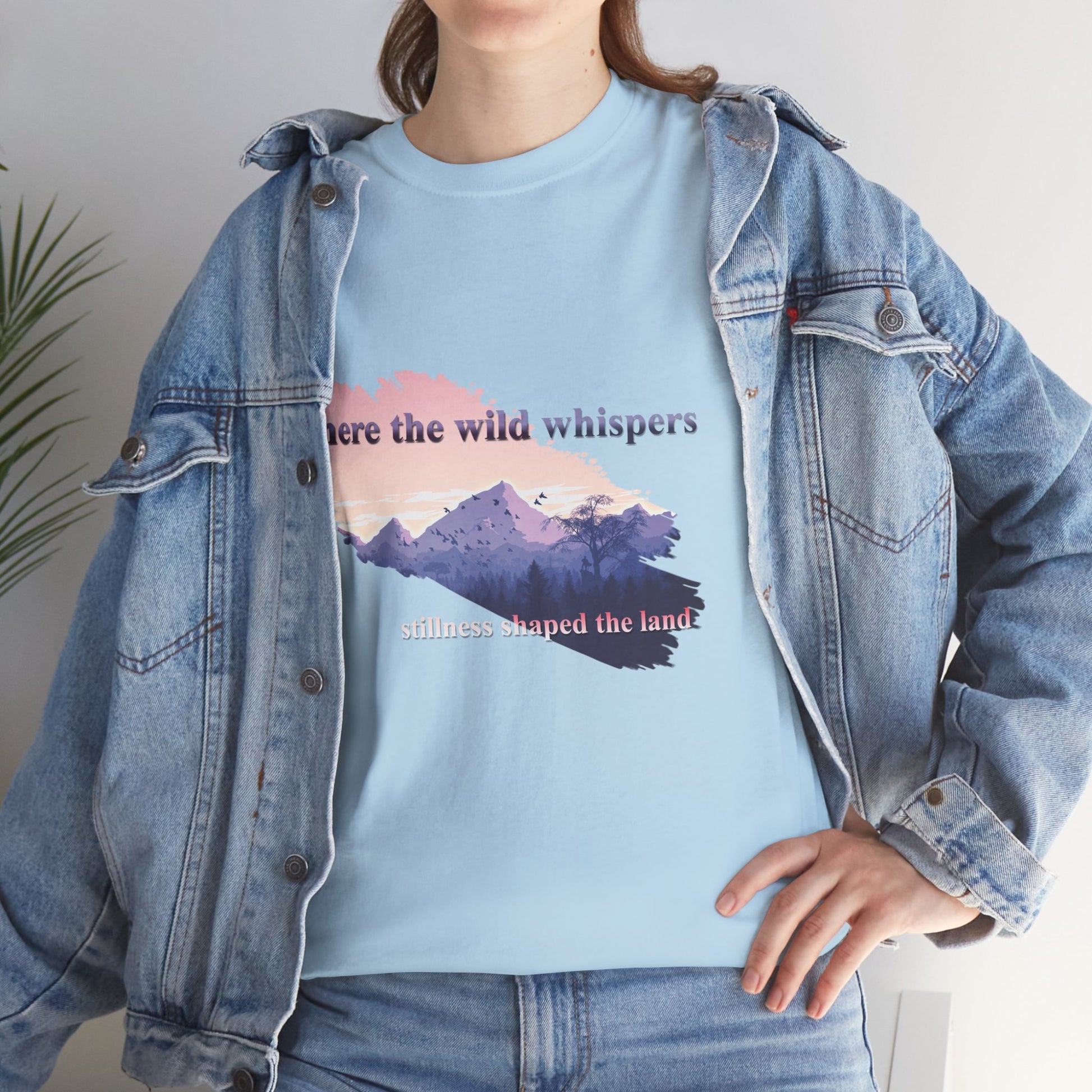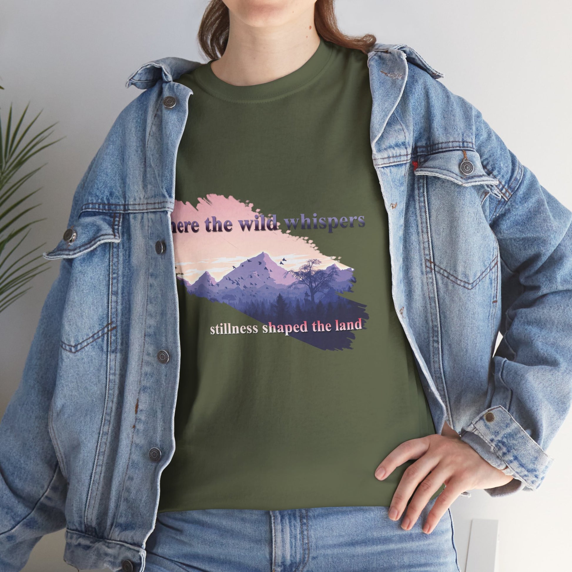 This Unisex Heavy Cotton Tee embodies a spirit of adventure and exploration, perfect for those who find comfort in the wilderness. The design features a serene landscape with the phrase "where the wild whispers," making it an ideal companion for outdoor enthusiasts, nature lovers, or anyone who seeks a tranquil escape. Crafted for both comfort and durability, this t-shirt fits effortlessly into casual or semi-formal settings. It's versatile enough for laid-back gatherings or a day out in nature. Celebrate occasions like Earth Day, summer picnics, or cozy bonfire nights with friends. Gift it to friends or family who cherish the outdoors and appreciate sustainable fashion. Designed for adults, it promises a relaxed fit that enhances everyday wear.