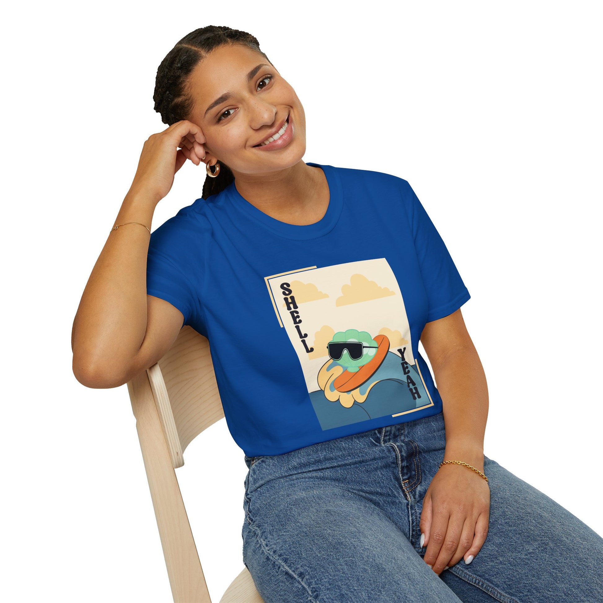 Light, smooth, and effortless — this tee carries a sun-warm, seaside mood. A relaxed crew cut frames a playful graphic of a chill shell wearing shades with the playful caption “Shell Yeah,” printed in soft coastal tones. It sits lightly on the body and moves with you, so it becomes the shirt you reach for on slow beach days, casual meetups, or strolls along the pier. The print feels laid-back and fun, while the fabric keeps things breathable and comfortable all day long.