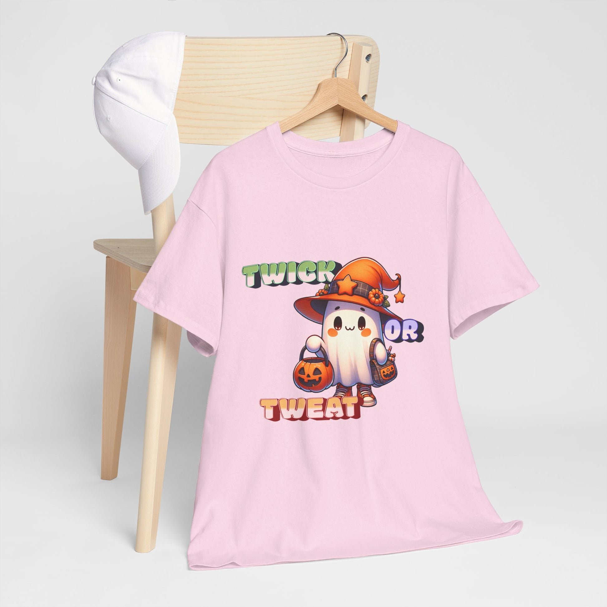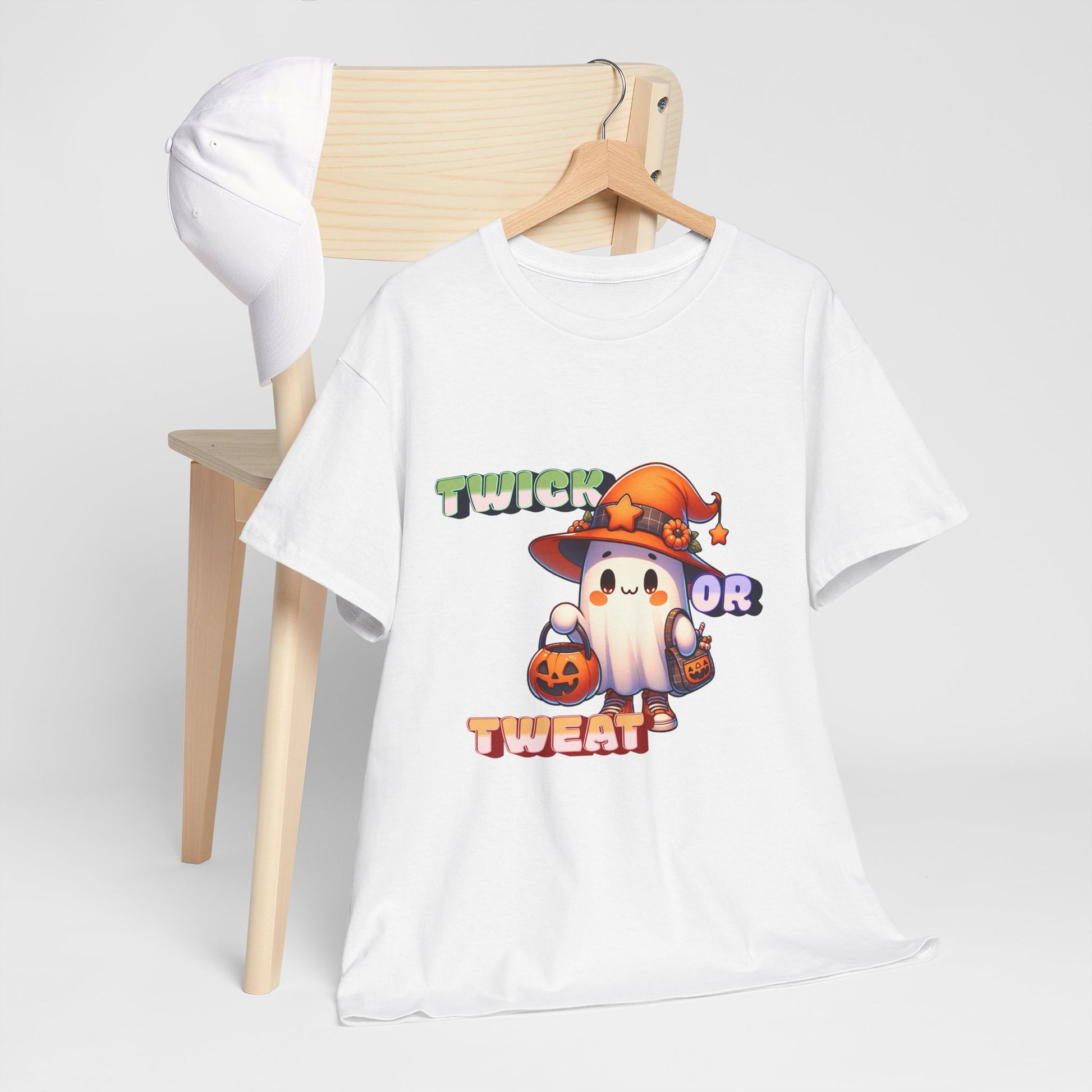 Step into the spirit of Halloween with this playful Unisex Heavy Cotton Tee. Featuring a charming ghost character and the fun phrase "Twick or Tweet," this shirt is perfect for celebrating the spooky season with friends and family. Its classic fit and soft cotton fabric ensure comfort whether you're out trick-or-treating or hosting a Halloween get-together. Ideal for adults, this tee makes a festive addition to your wardrobe, blending seamlessly with both casual and more dressed-up outfits. Celebrate Halloween, costume parties, or even whimsical dress-down days with this endearing yet stylish piece that conveys a lighthearted, spooky vibe.